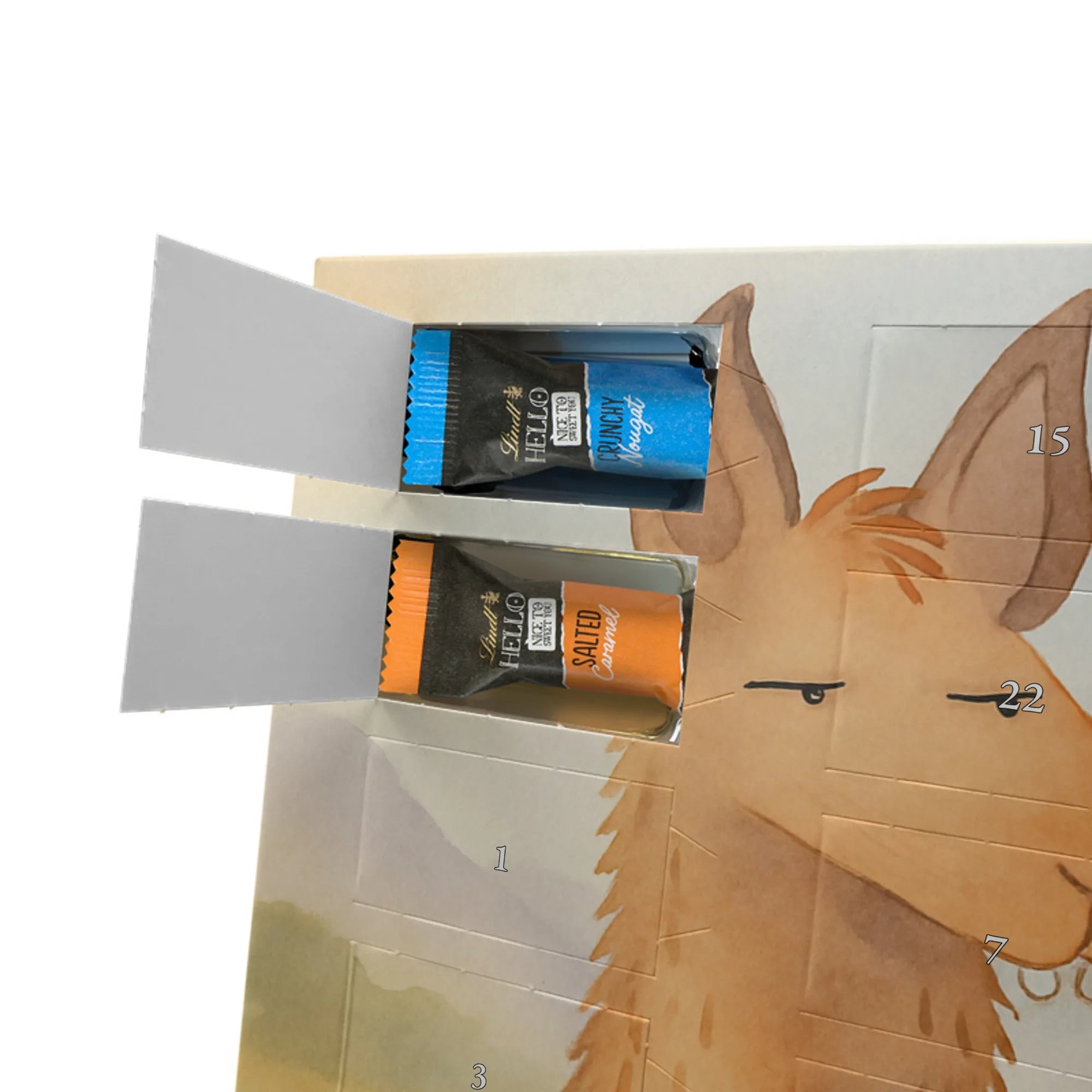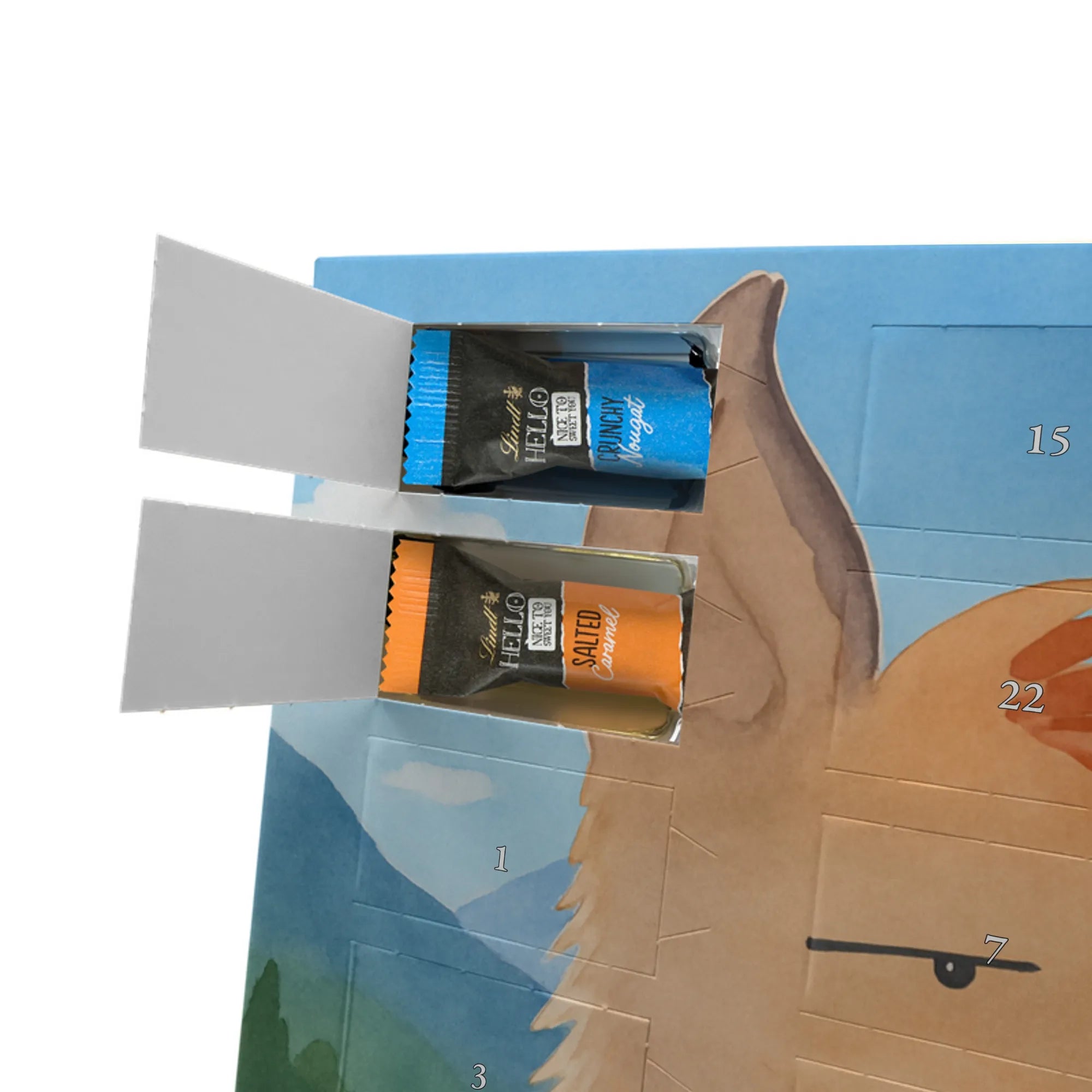 Mach die Adventszeit süßer: Entdecke jetzt unseren liebevoll bedruckten Adventskalender und genieße 24 Tage voller Lindt Hello Mini Sticks!