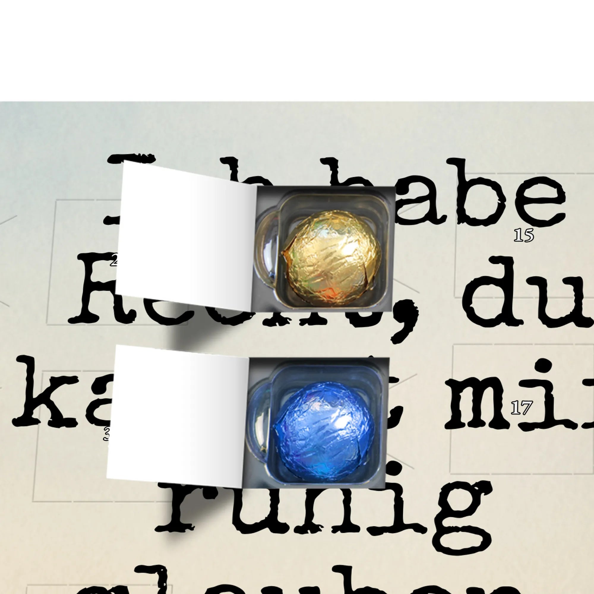 Wichtiger Hinweis: Der Kalender kann Spuren von Haselnüssen, Mandeln, Gluten und Soja enthalten. Kühl und trocken lagern. Gefüllt mit MARKENNAMEN Schokolade.
