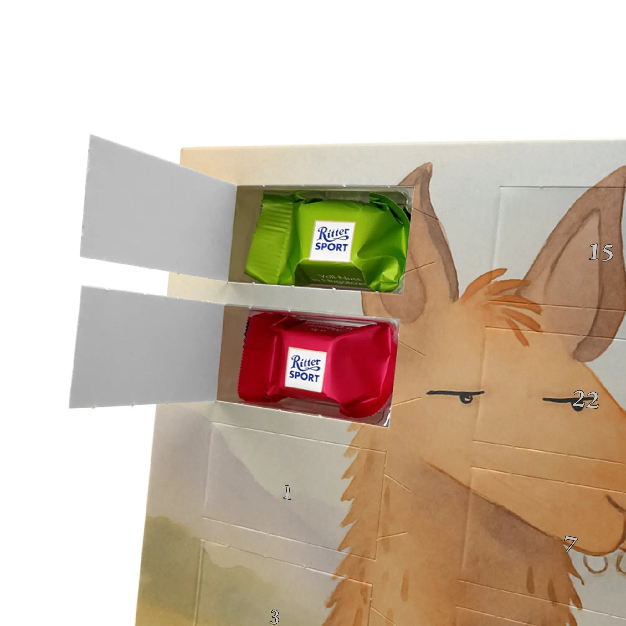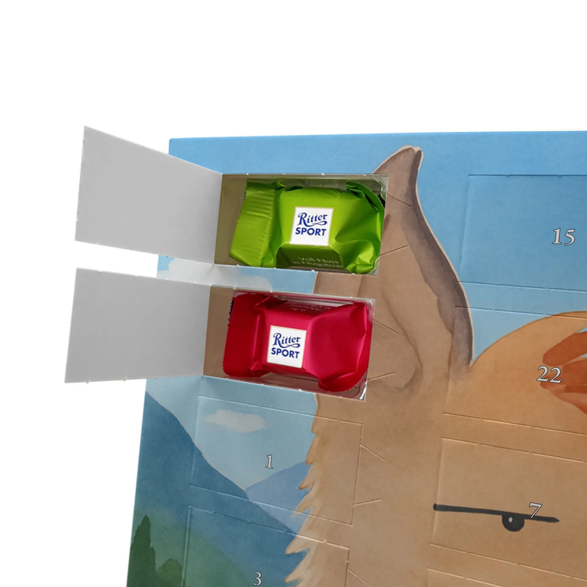 🐼 24 Türchen gefüllt mit Ritter Sport Schokowürfeln – perfekte Adventsüberraschungen.