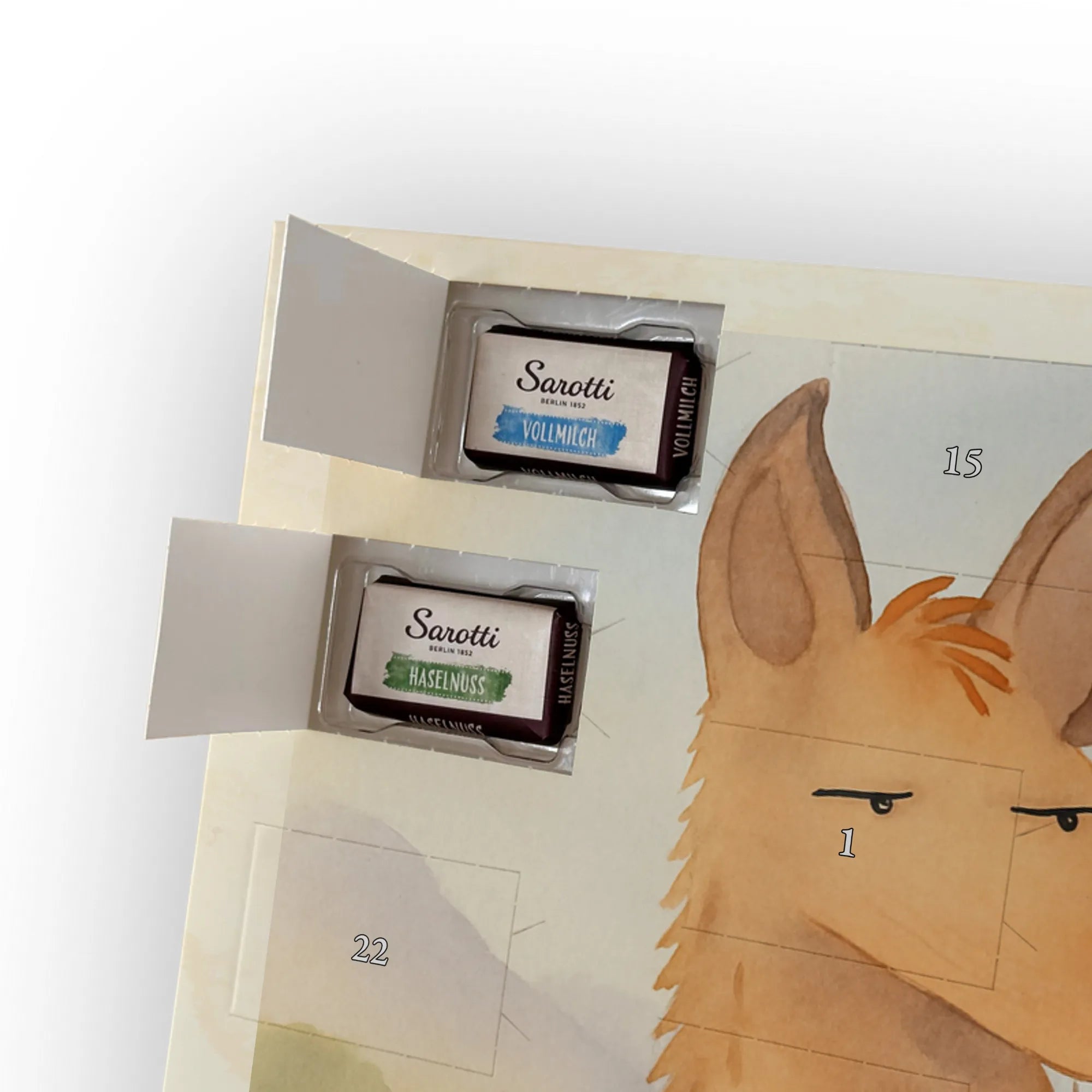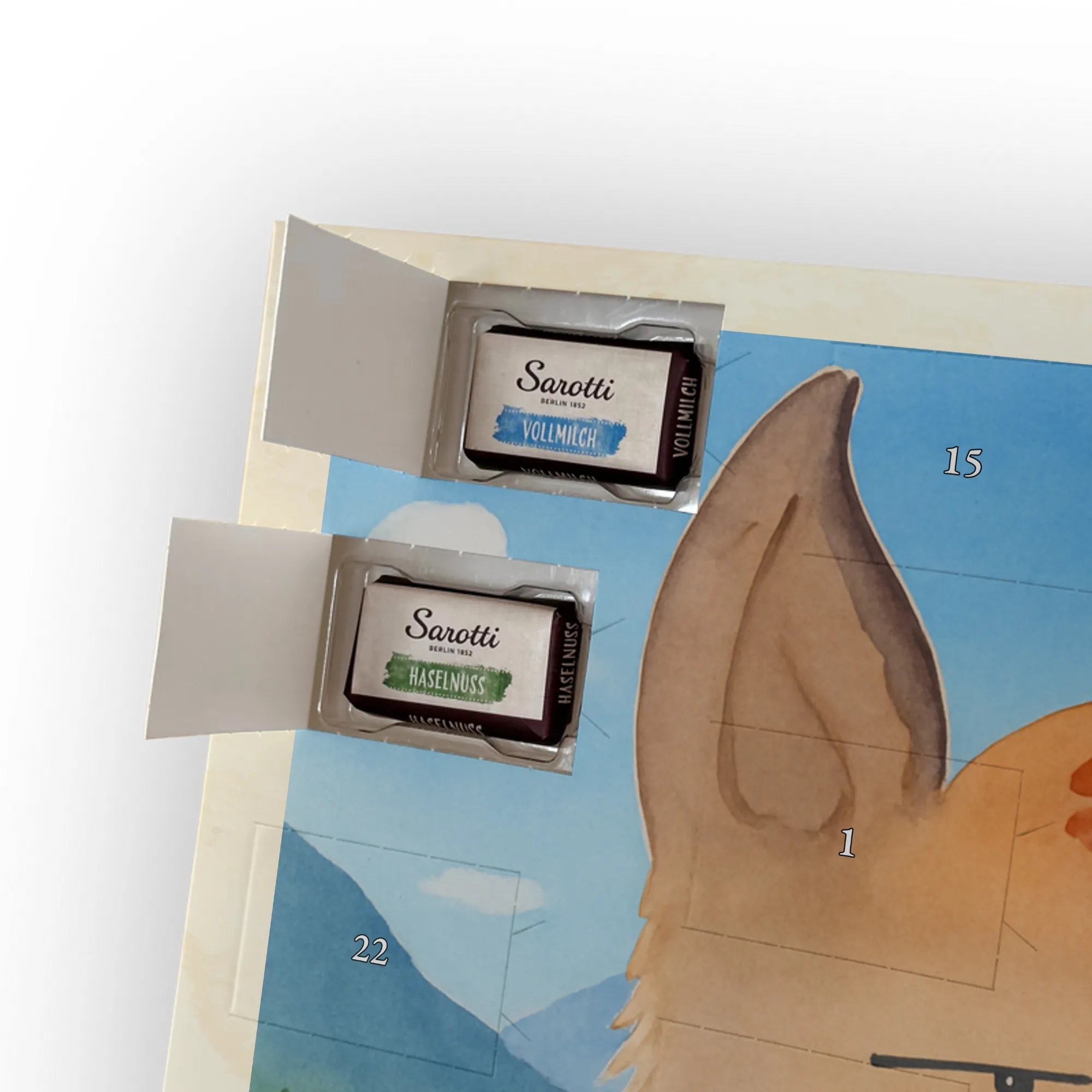 🐼 SCHOKOLADEN-ADVENTSKALENDER: Edler, seidenmatter Druck mit liebevollen Illustrationen.