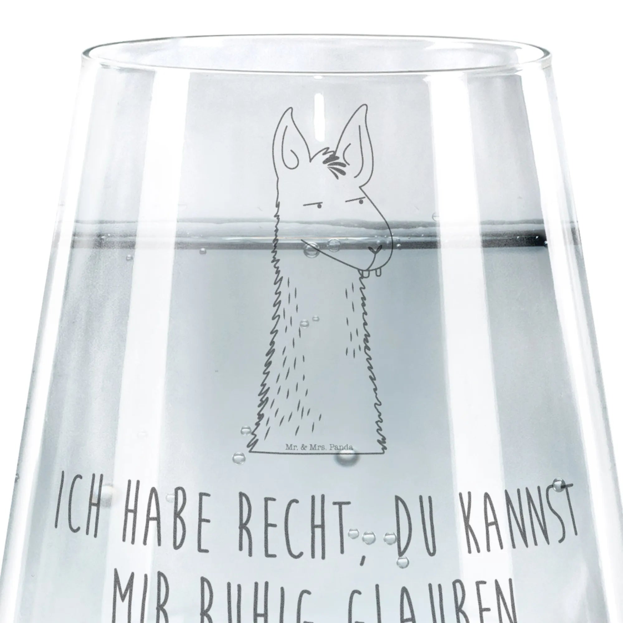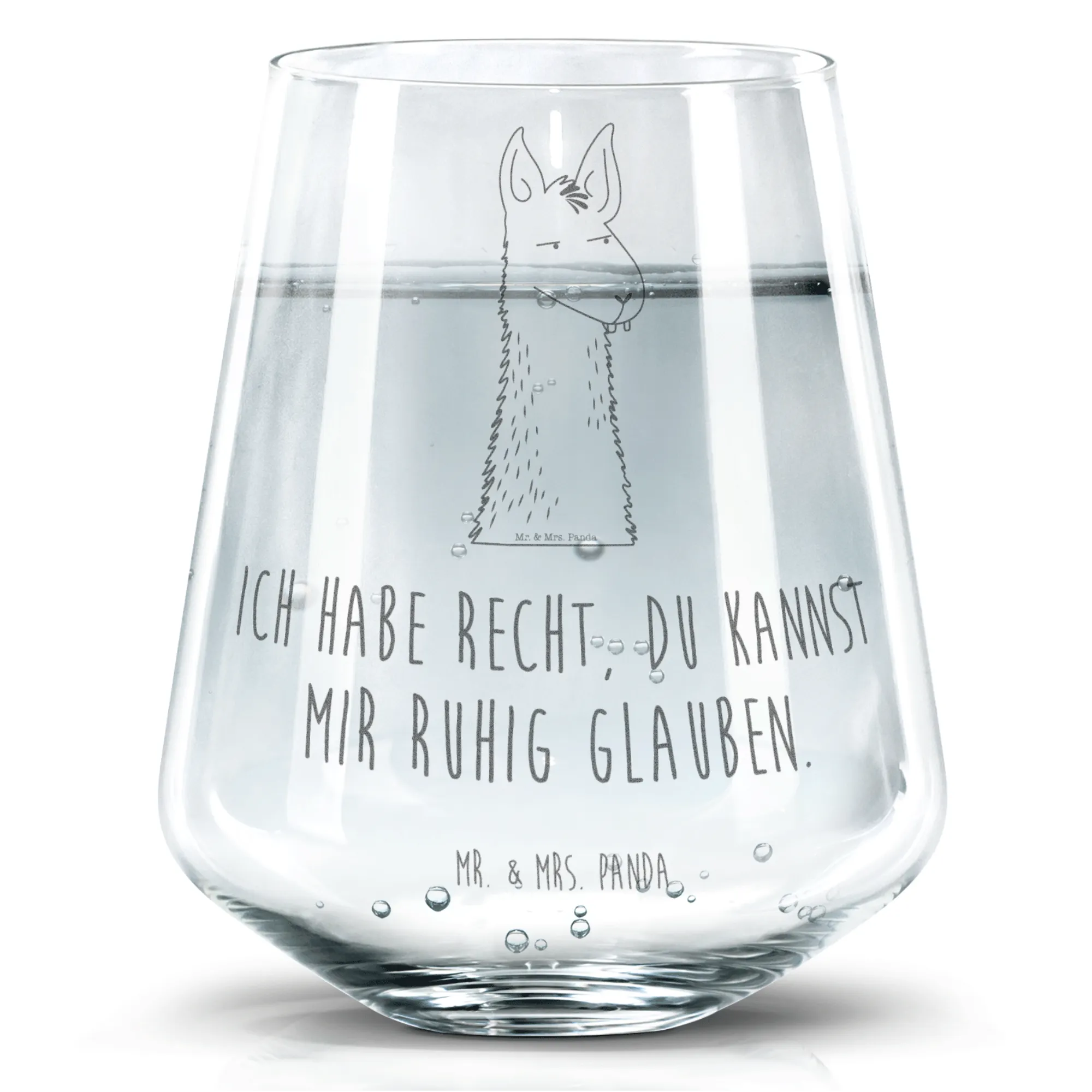 Das Trinkglas mit dem genervten Lamakopf aus der Lama-Kollektion von Mr. & Mrs. Panda wird nicht nur Deine Getränke stilvoll präsentieren, sondern bringt auch ein wenig Humor in Deinen Alltag. Dieses wunderschöne Trinkglas ist perfekt als Wasserglas, Saftglas oder für andere Erfrischungsgetränke geeignet. Mit einer Füllmenge von 400 ml und einem robusten Glasmaterial eignet sich das Glas ideal für den täglichen Gebrauch - egal ob im Büro, Zuhause oder als Geschenk für Deine beste Freundin.
