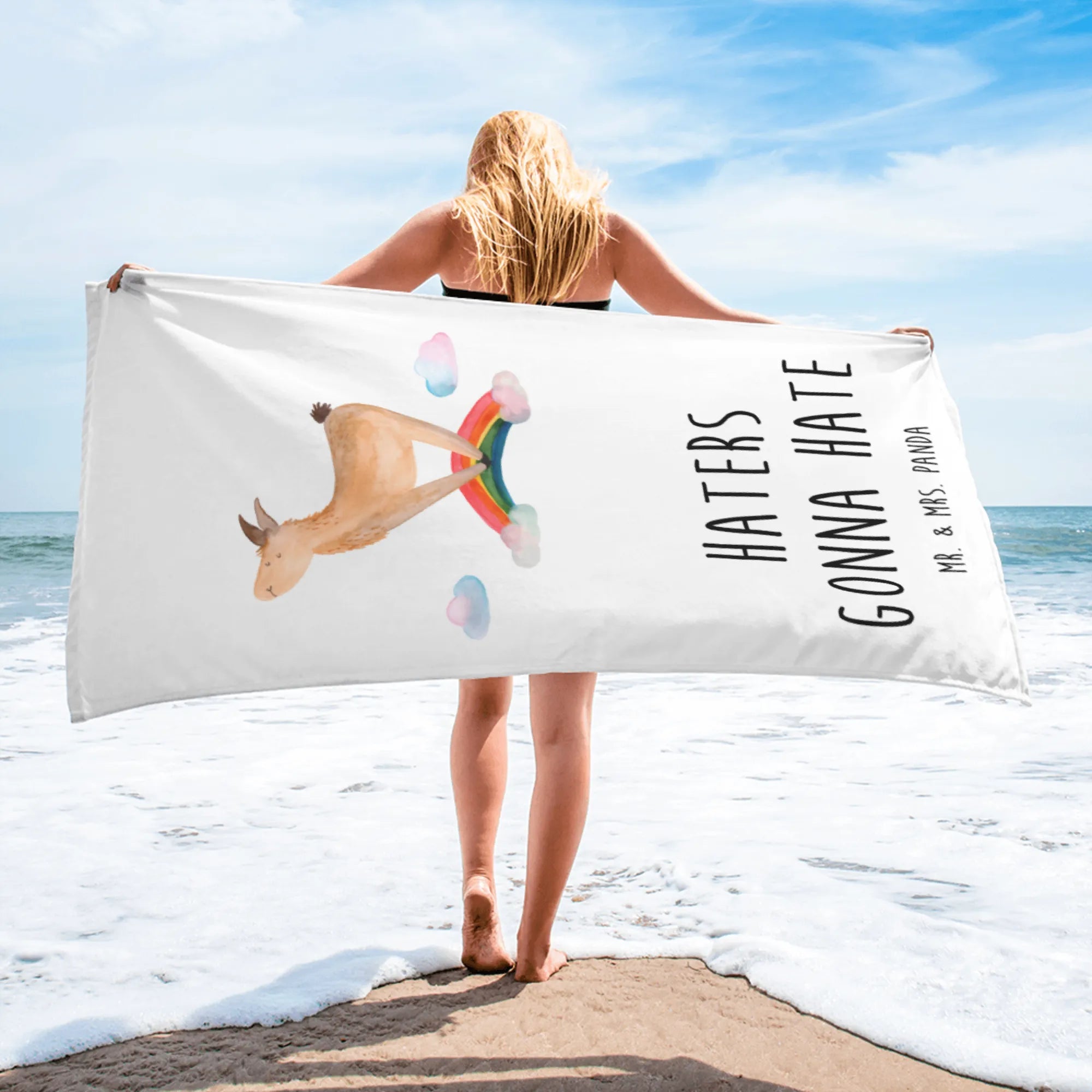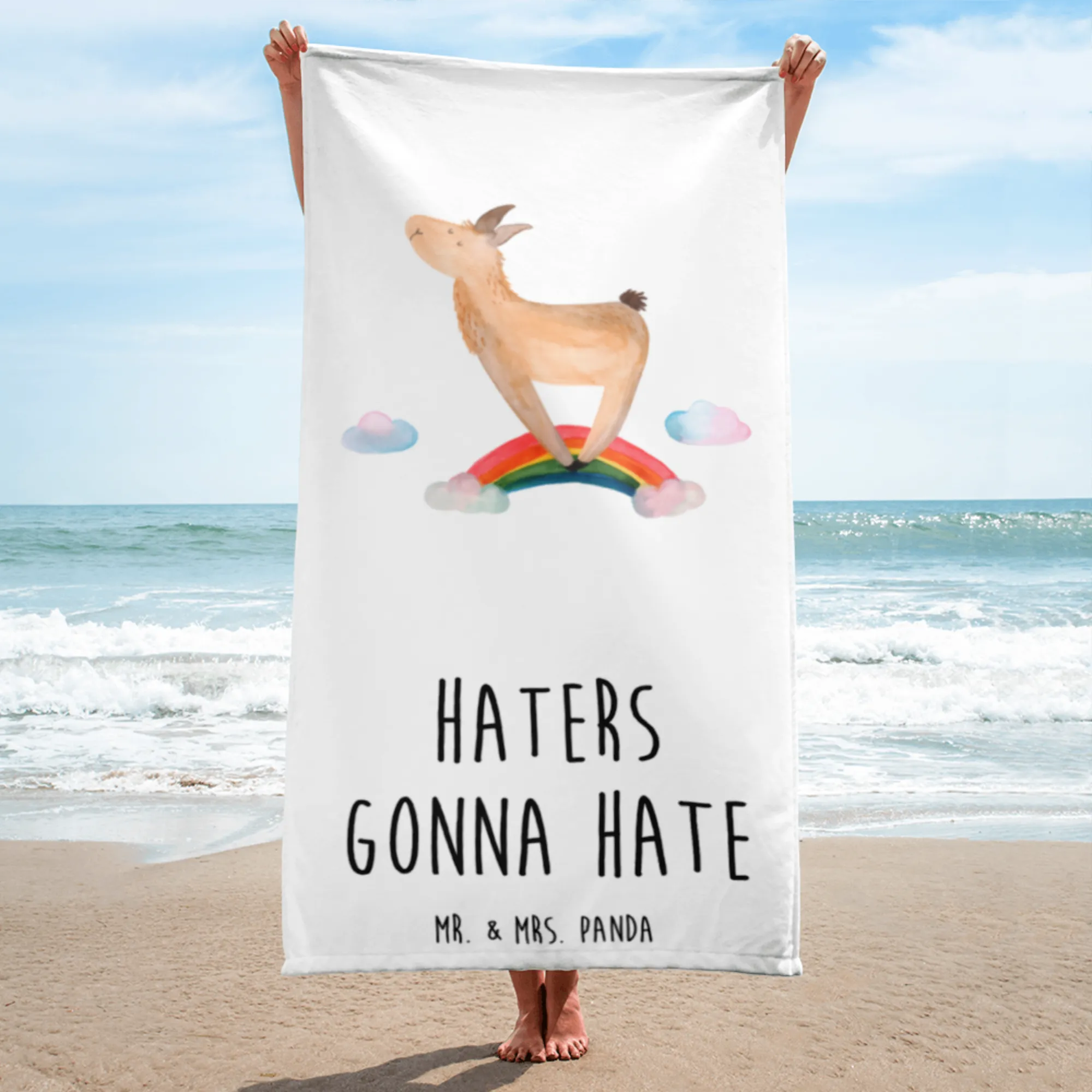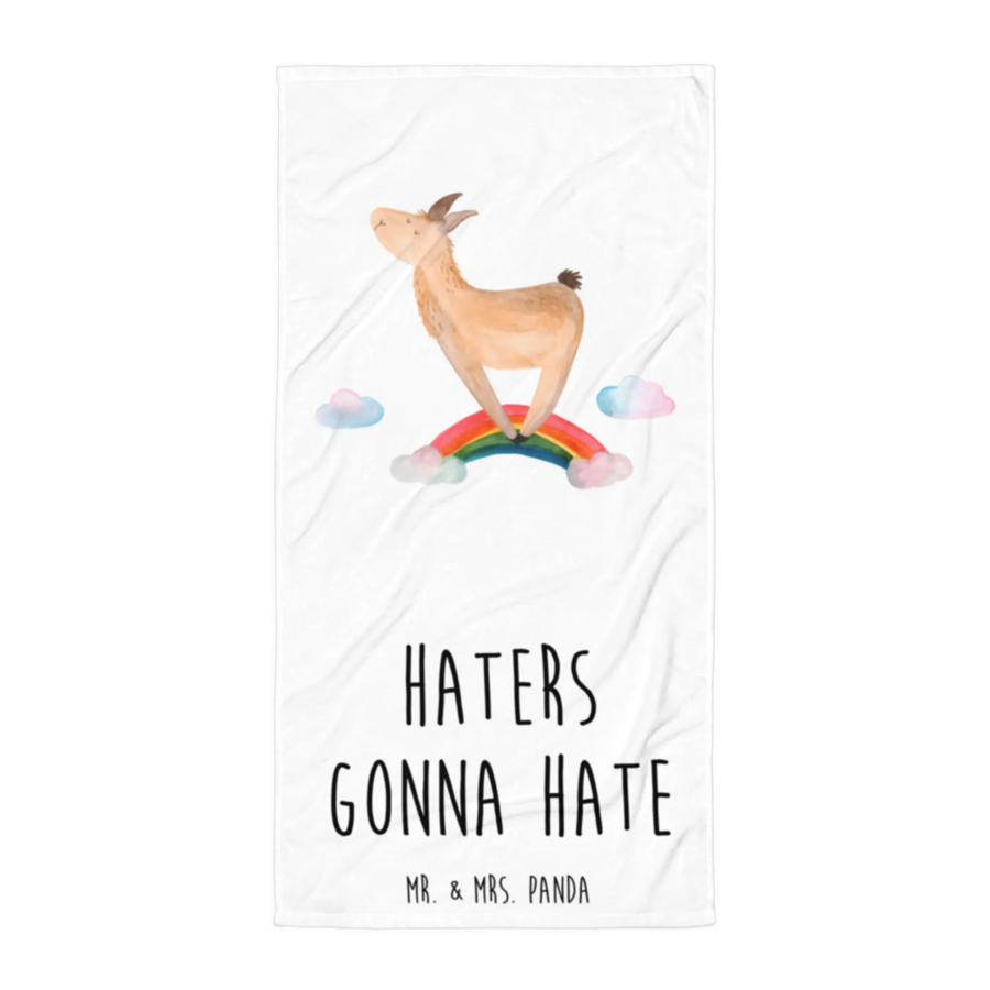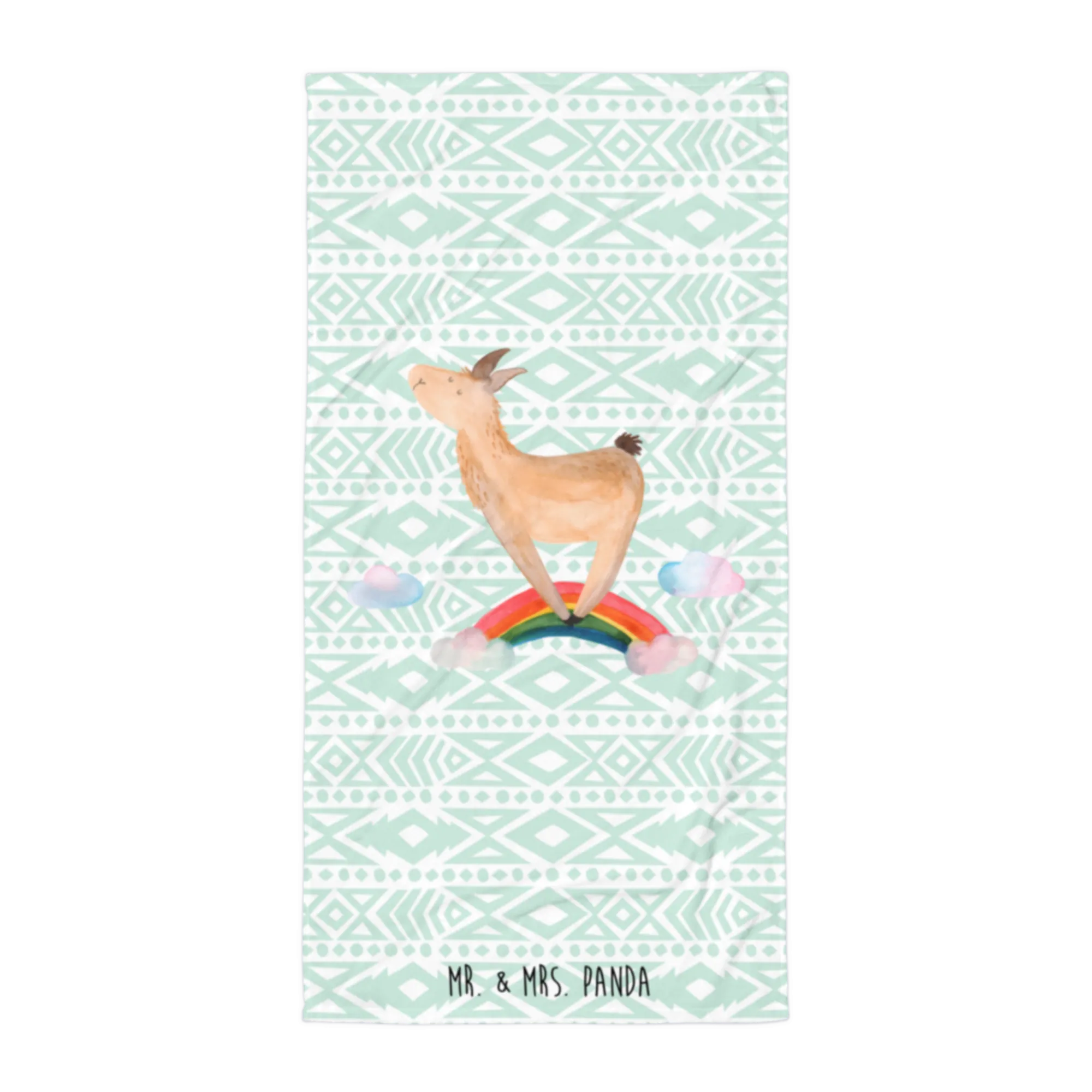 Das XL Badehandtuch mit dem süßen Lama Regenbogen-Motiv aus der Lama-Kollektion von Mr. & Mrs. Panda ist der perfekte Begleiter für deinen Tag am Strand, im Schwimmbad oder in der Sauna.