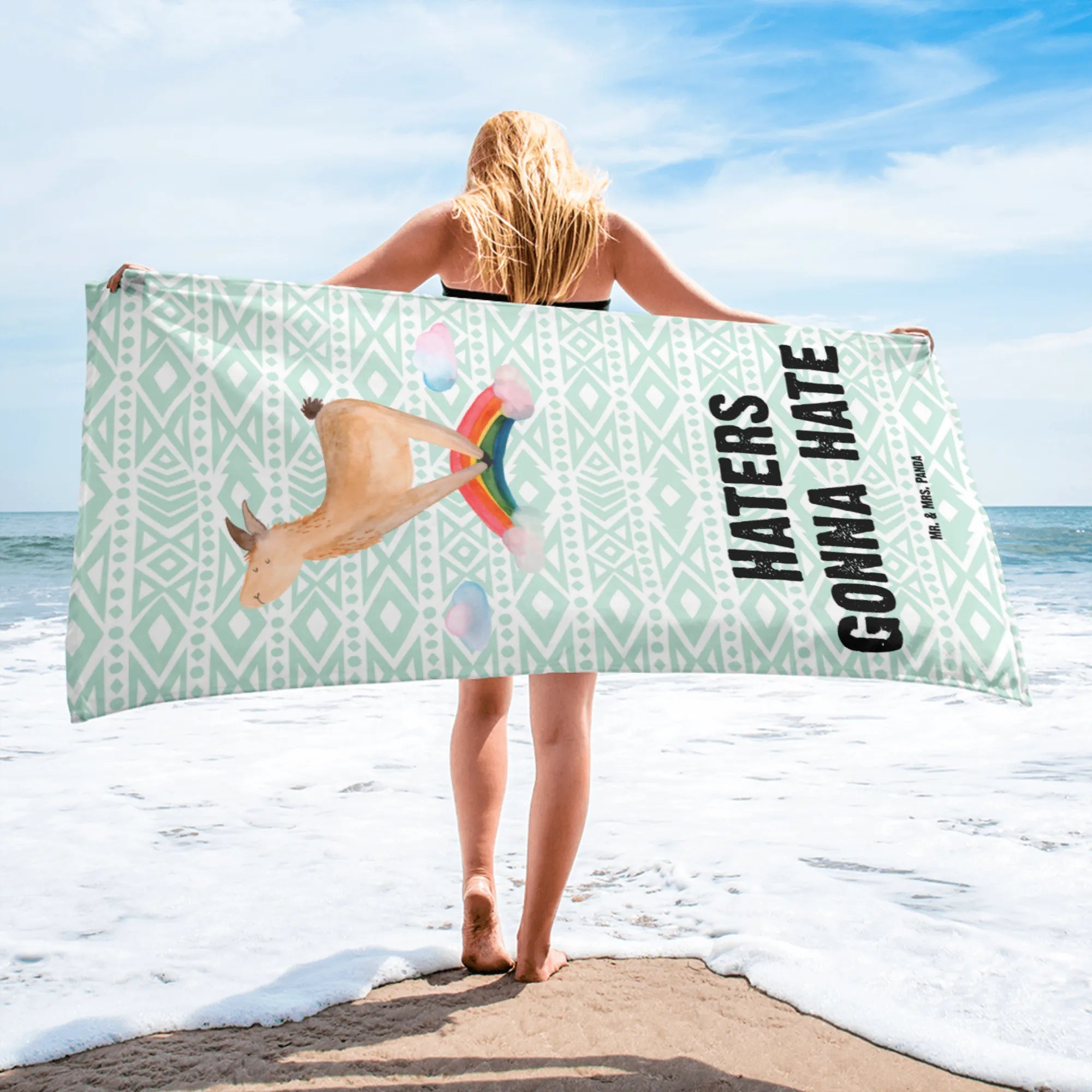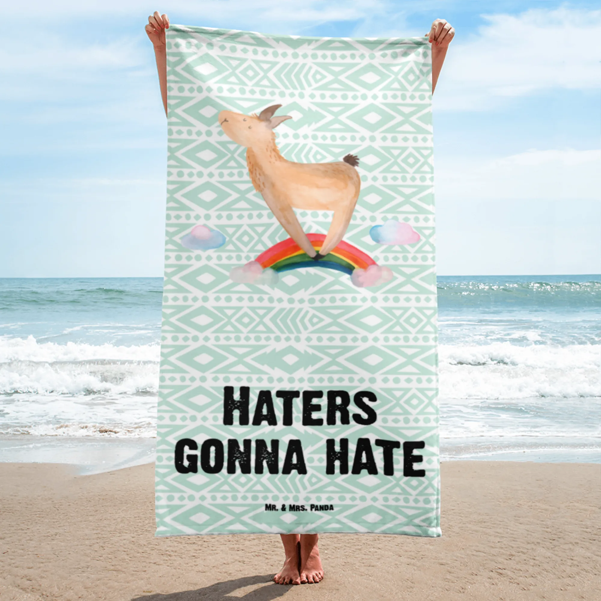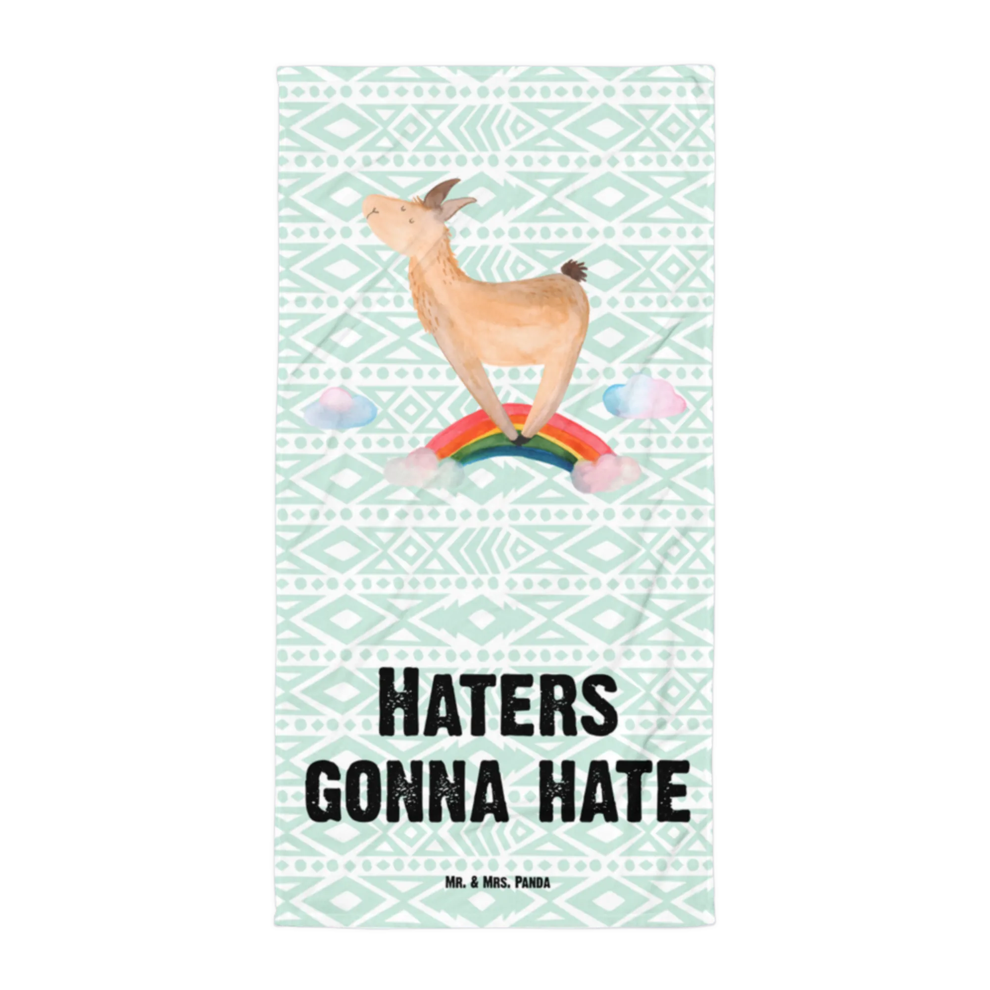 Das XL Badehandtuch mit dem süßen Lama Regenbogen-Motiv aus der Lama-Kollektion von Mr. & Mrs. Panda ist der perfekte Begleiter für deinen Tag am Strand, im Schwimmbad oder in der Sauna.