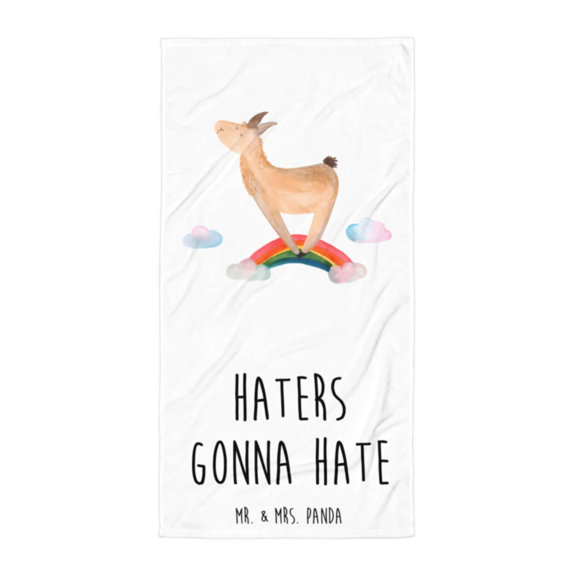 XL Badehandtuch Lama Regenbogen - mit Spruch - Weiß