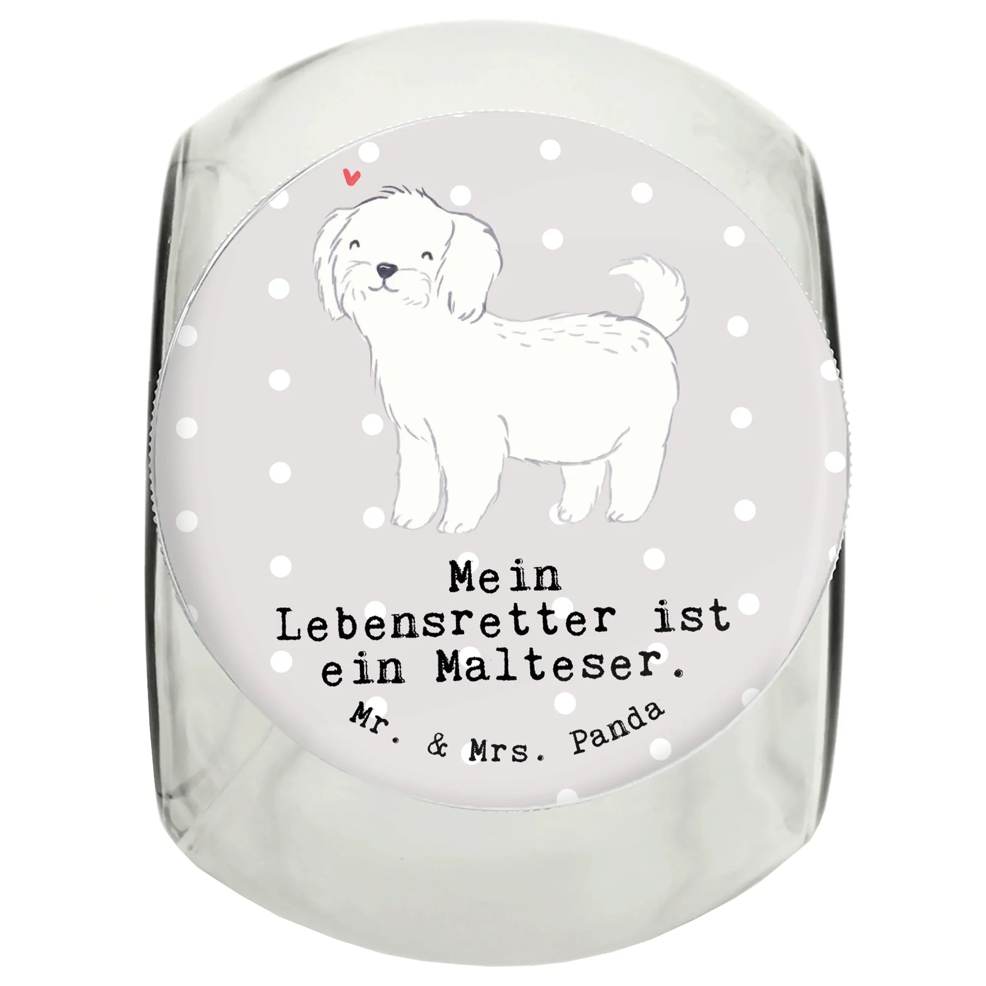 Das Leckerli Glas "Mein Lebensretter ist ein Malteser" von Mr. & Mrs. Panda ist nicht nur ein schlichtes Vorratsgefäß, sondern ein liebevolles Geschenk für jeden Malteser-Fan. Es ist perfekt für Hundebesitzer, die ihren kleinen Liebling, den Malteser, gebührend feiern möchten.