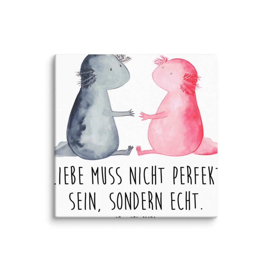 Leinwand Bild Axolotl Liebe - 40 x 40 cm - mit Spruch - Weiß