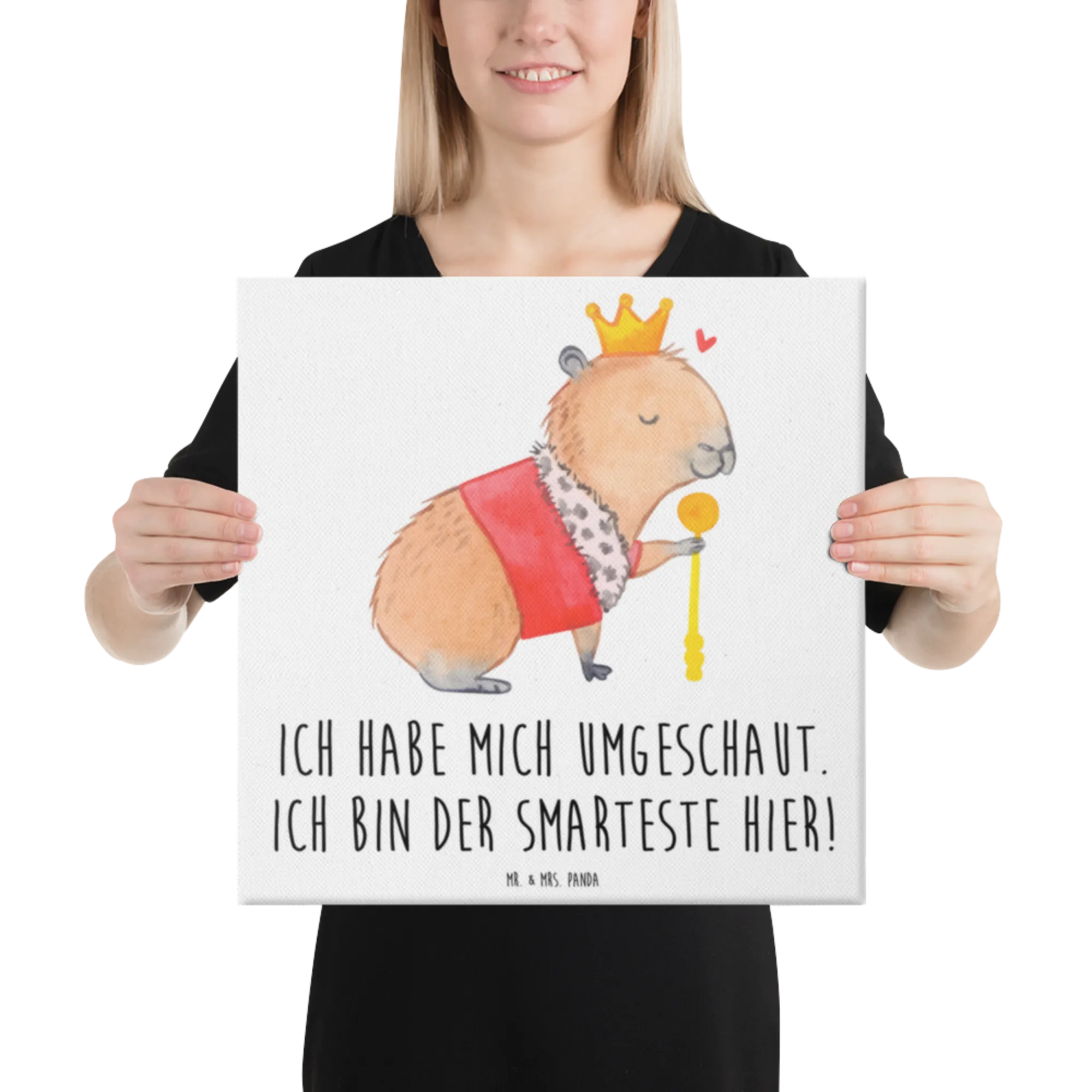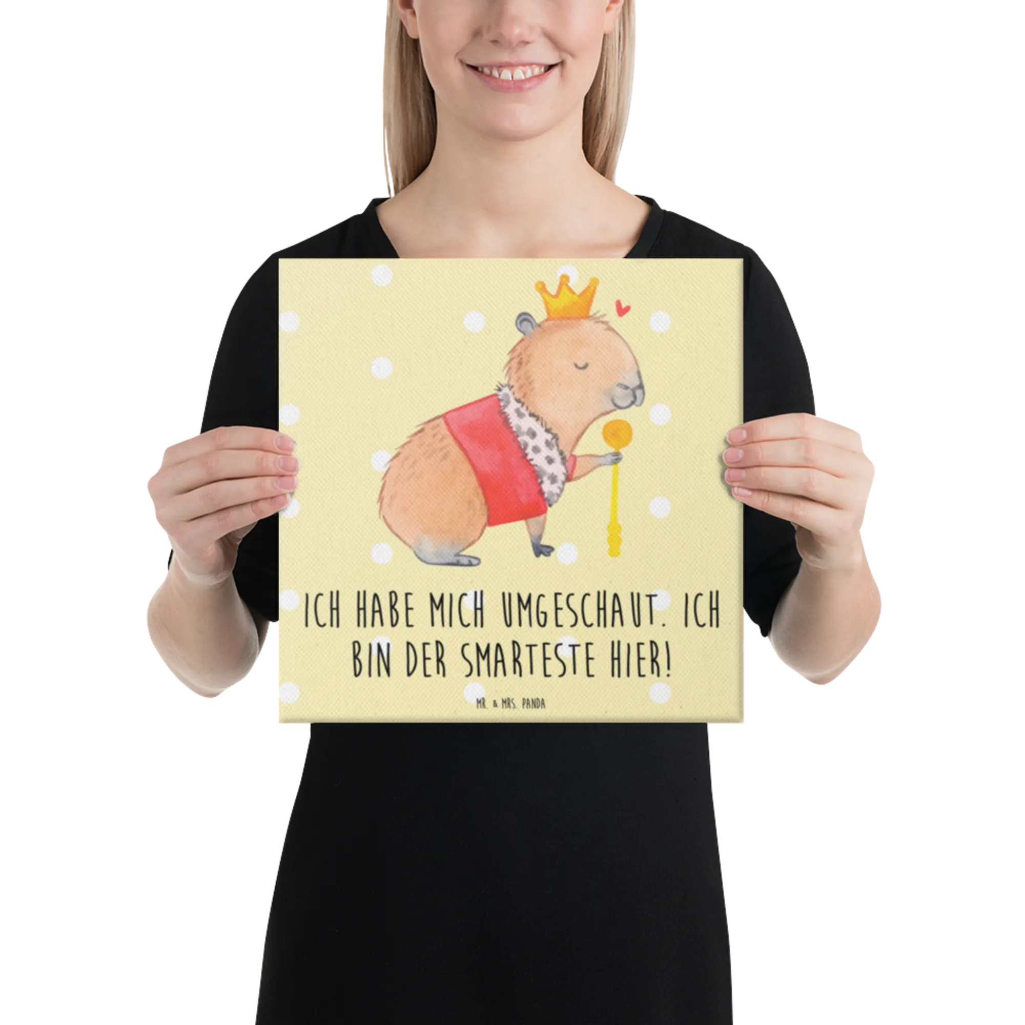 Leinwand Bild Capybara König - 30 x 30 cm - Gelb Pastell