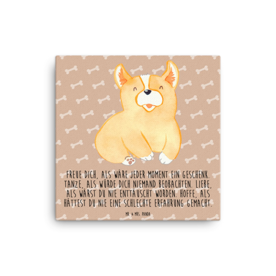 Leinwand Bild Corgie - 30 x 30 cm - mit Spruch - Hundeglück
