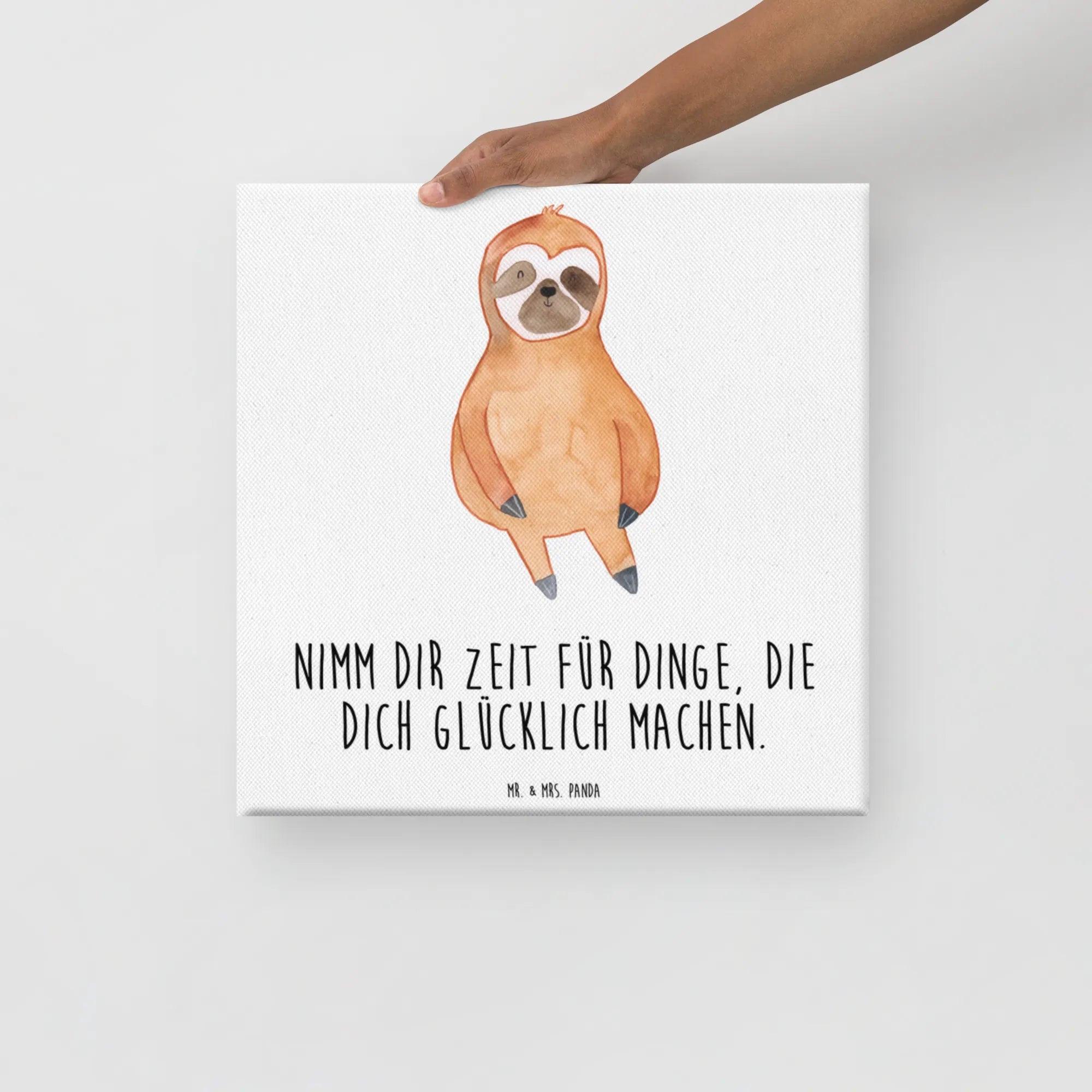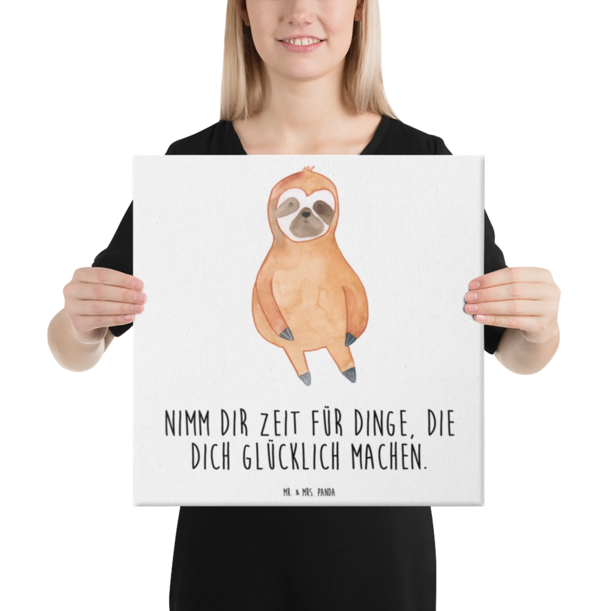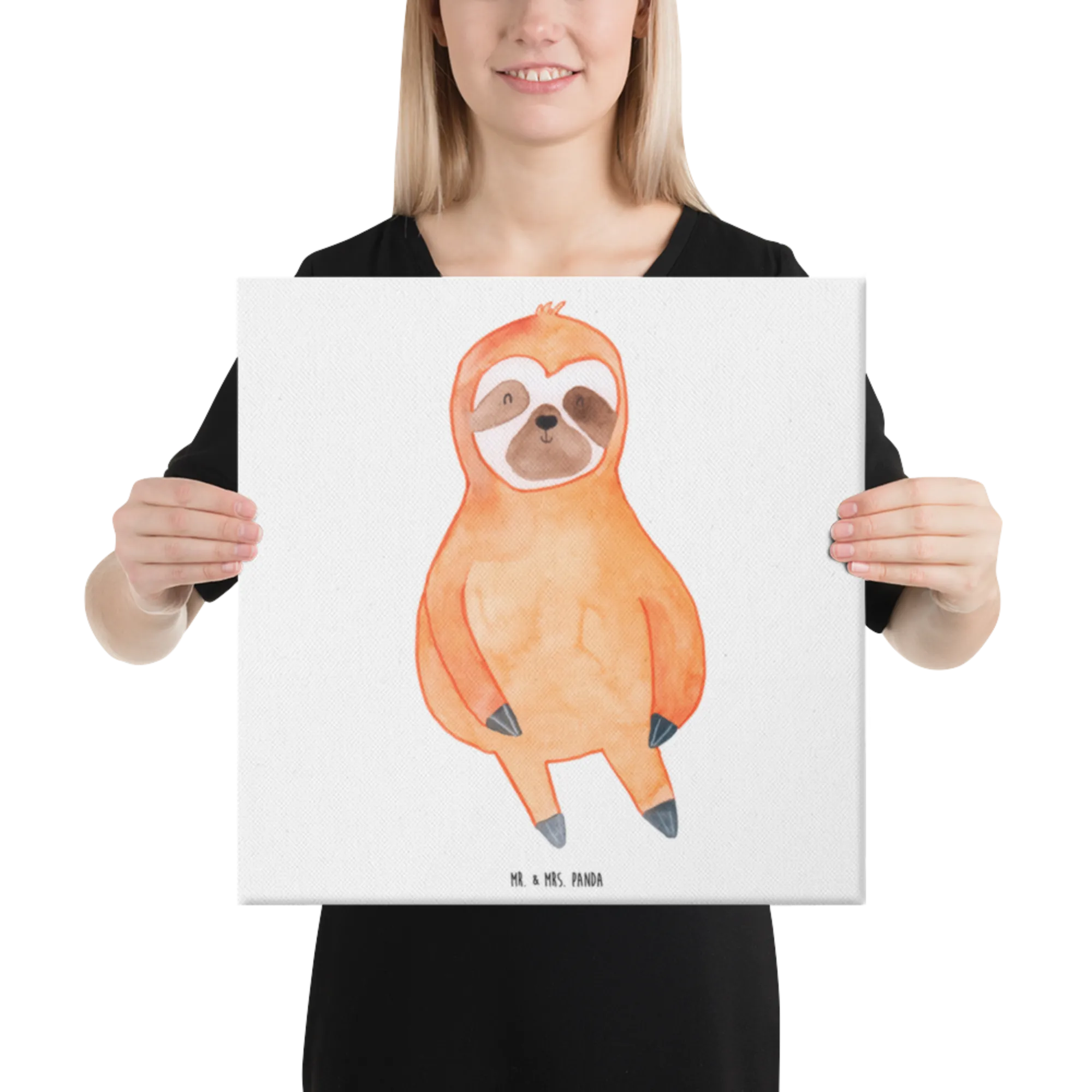 Leinwand Bild Faultier Zufrieden - mit Spruch