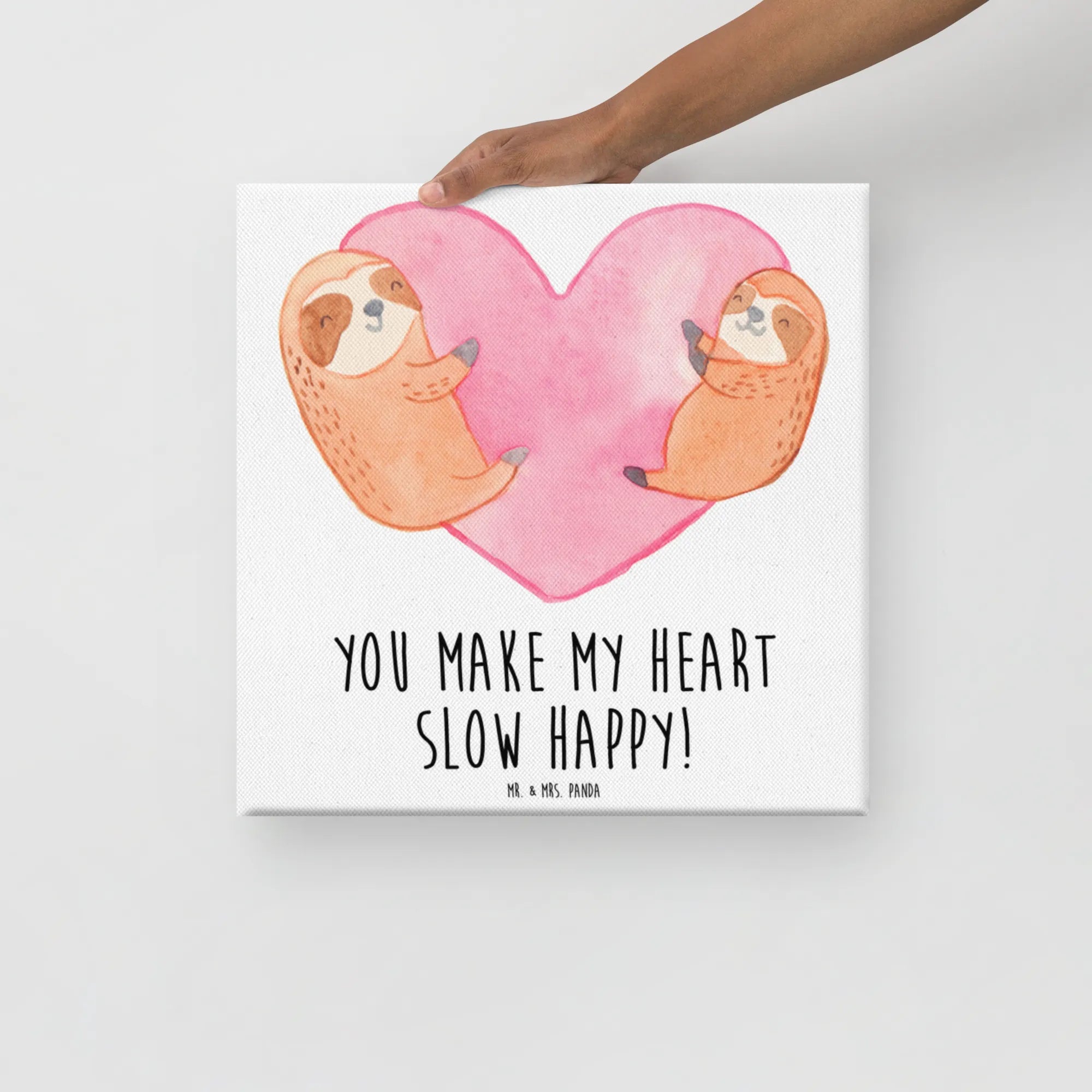 Das Faultier Herz-Motiv bringt fröhliche Farben und Herzlichkeit in dein Zuhause. Die entspannten Faultiere in einem liebevollen rosa Hintergrund laden zum Träumen und Kuscheln ein. 'You make my heart slow happy!' beschreibt genau die entspannte, aber tiefe Verbindung, die man zu seinem Partner aufbauen kann. Ob zum Hochzeitstag oder einfach nur als süßes Mitbringsel – dieses Motiv ist nicht nur eine Deko, sondern auch ein herzlicher Liebesbeweis. Egal ob für die Freundin oder den Ehemann, dieses Design wird die Herzen erobern und zum Schmunzeln anregen. Feiere die kleinen, aber bedeutenden Momente des Lebens und verschenke Glück und Freude in Form eines wunderschönen Geschenks.