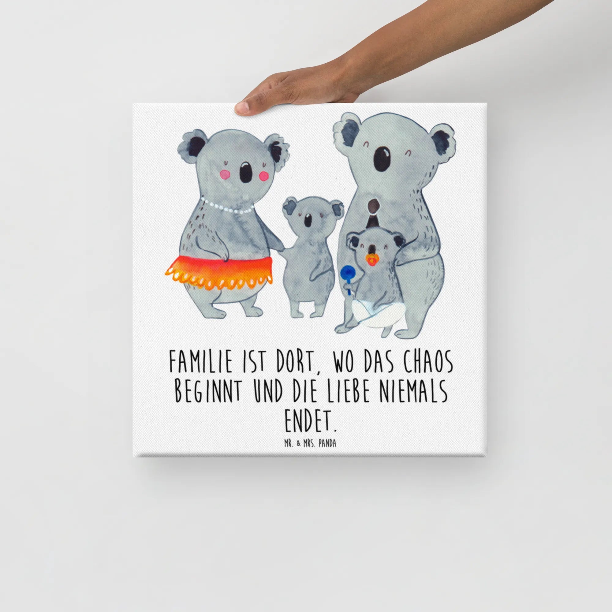 Leinwand Bild Koala Familie - 40 x 40 cm - mit Spruch - Weiß
