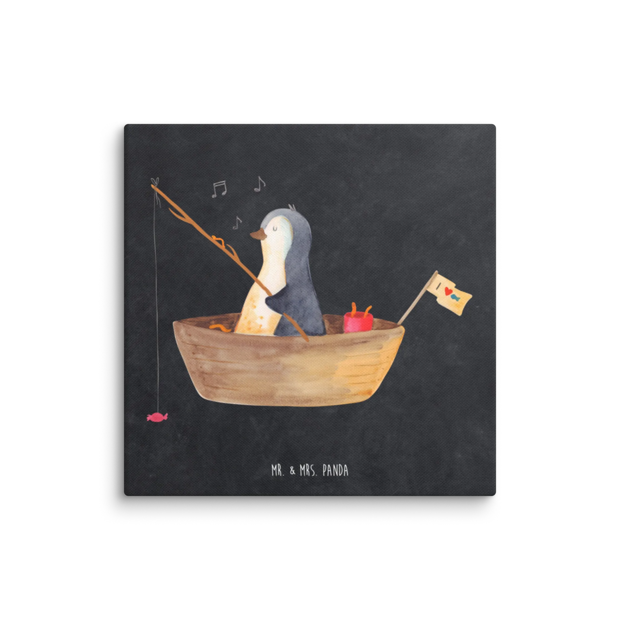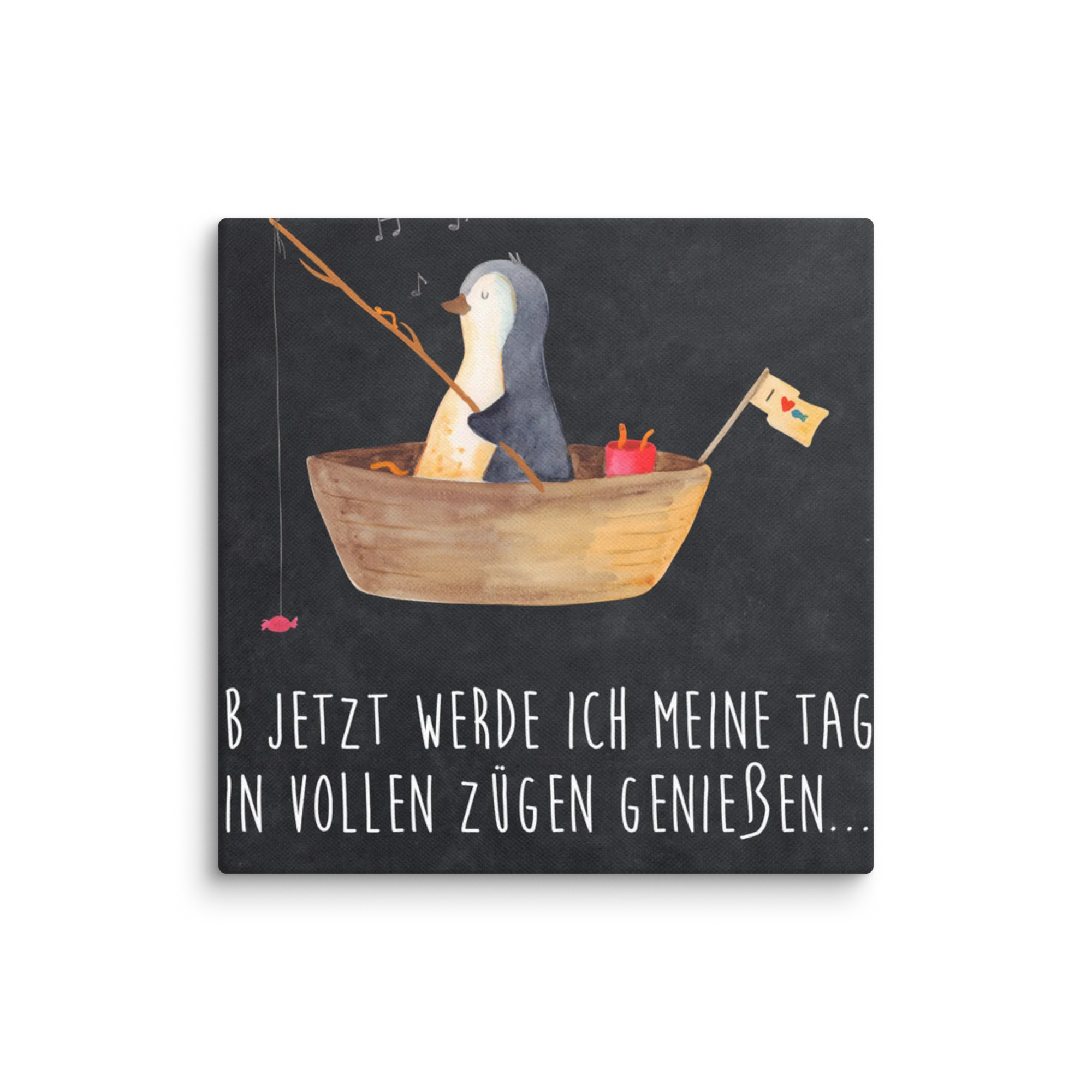 Leinwand Bild Pinguin Angelboot - 40 x 40 cm - mit Spruch - Kreidetafel
