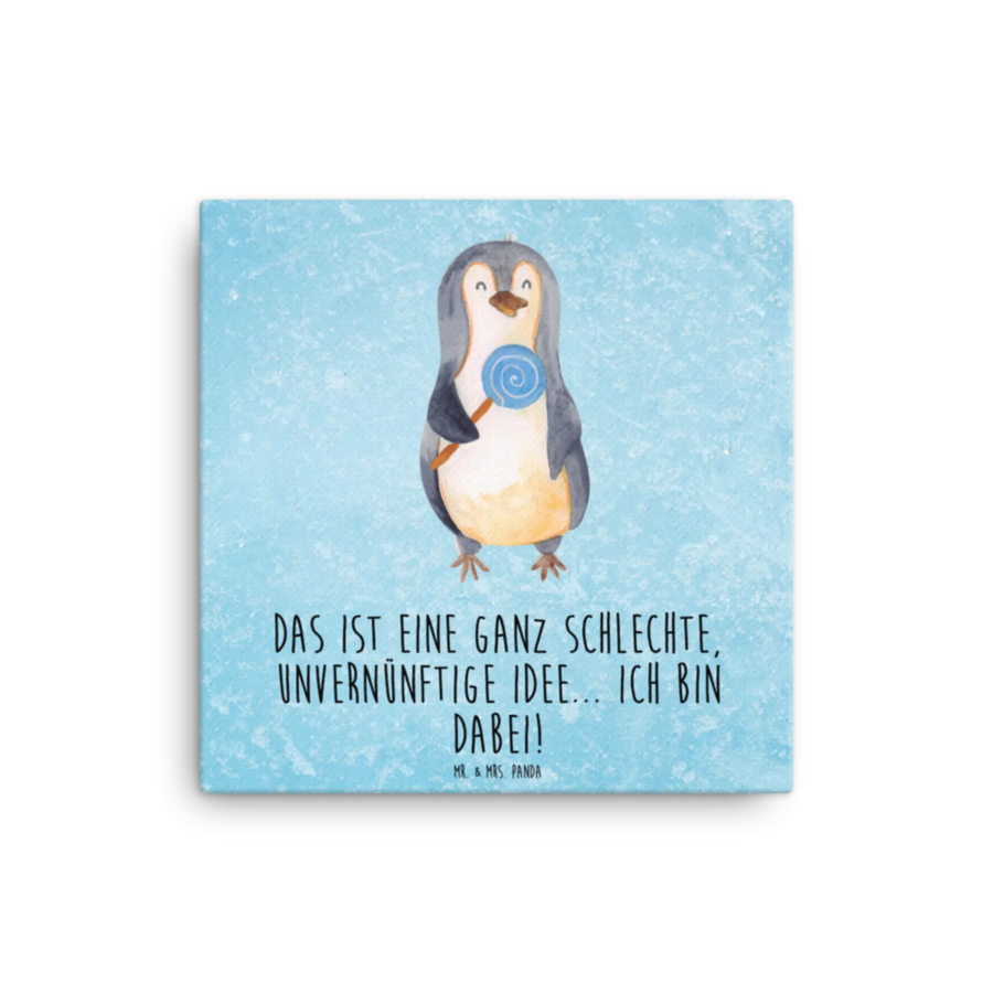 Leinwand Bild Pinguin Lolli - 40 x 40 cm - mit Spruch - Eisblau