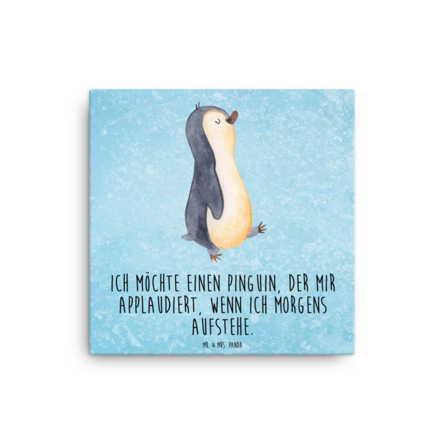 Leinwand Bild Pinguin marschierend - 40 x 40 cm - mit Spruch - Eisblau
