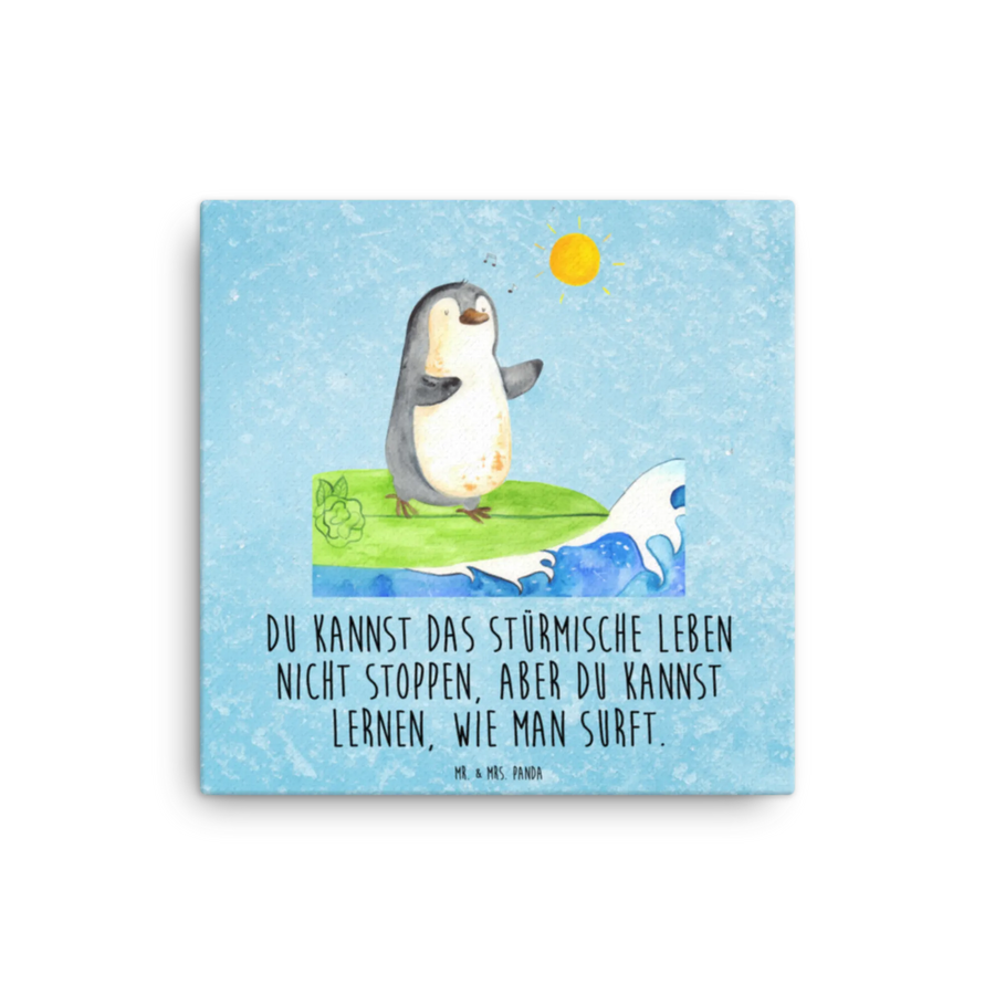 Leinwand Bild Pinguin Surfer - 40 x 40 cm - mit Spruch - Eisblau