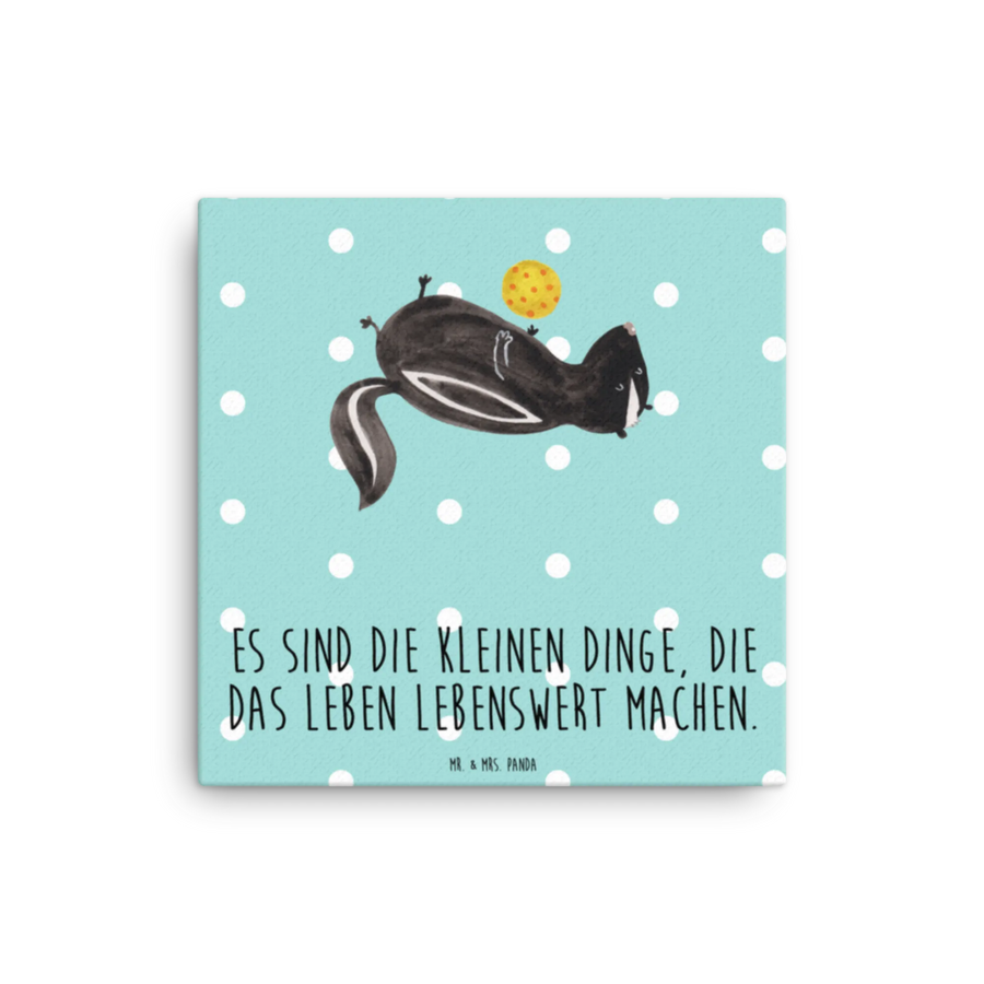 Leinwand Bild Stinktier Ball - 40 x 40 cm - mit Spruch - Türkis Pastell