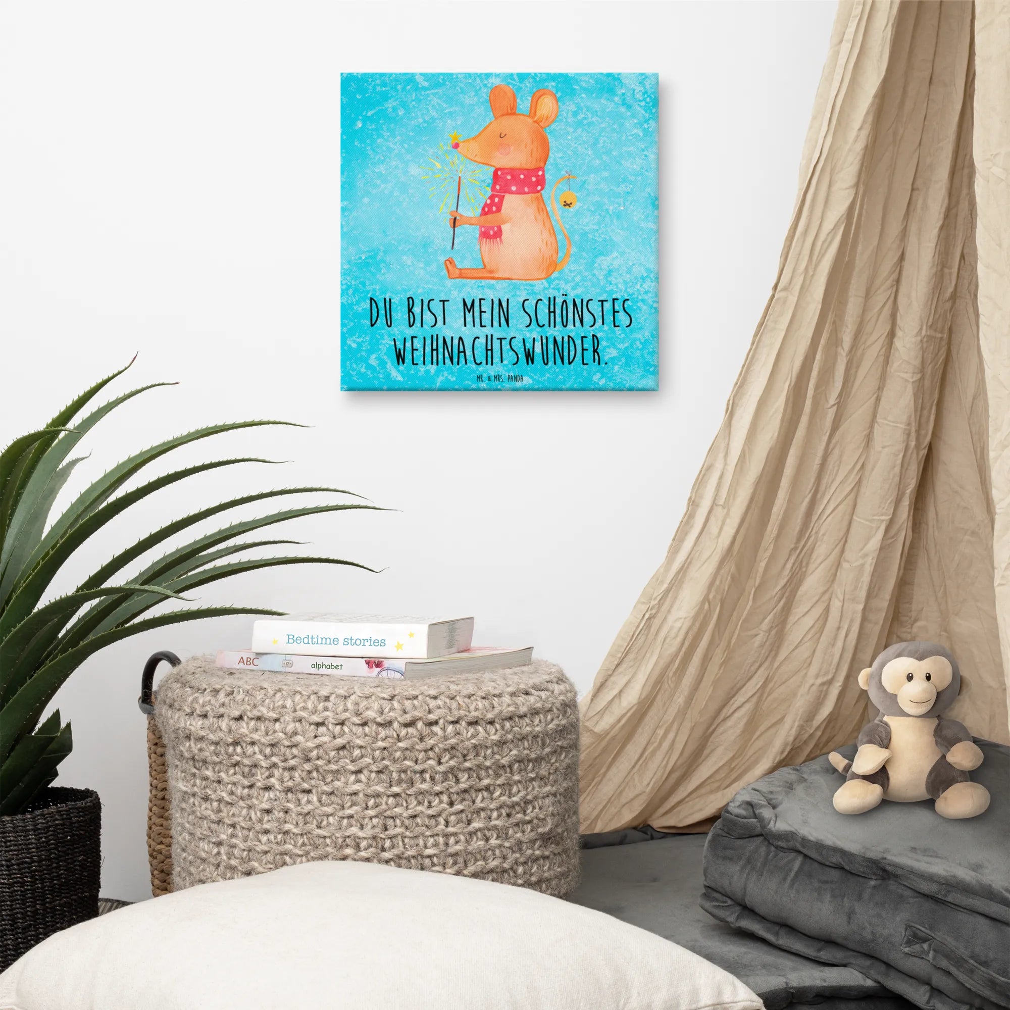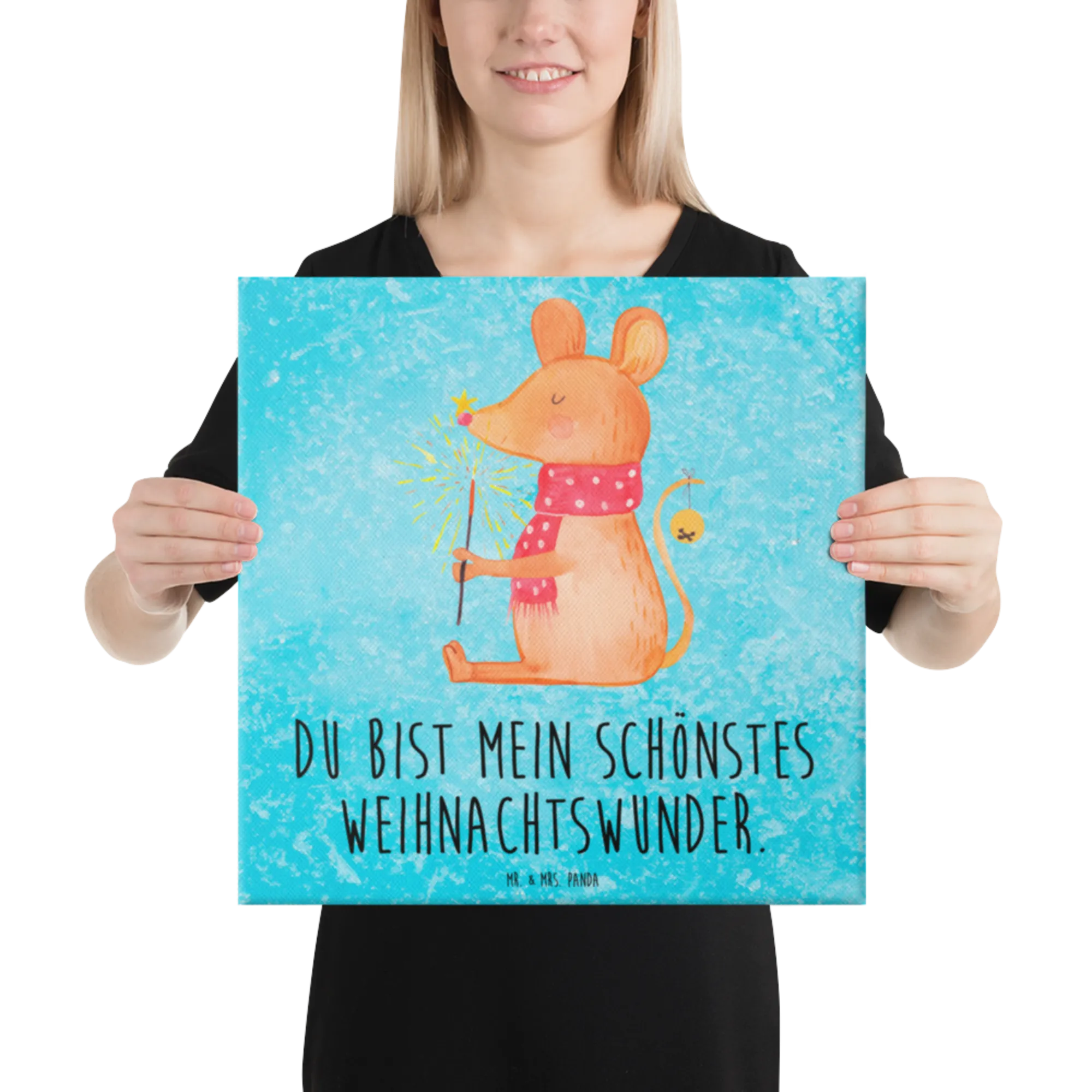 Leinwand Bild Maus Weihnachten - 30 x 30 cm - mit Spruch - Eisblau