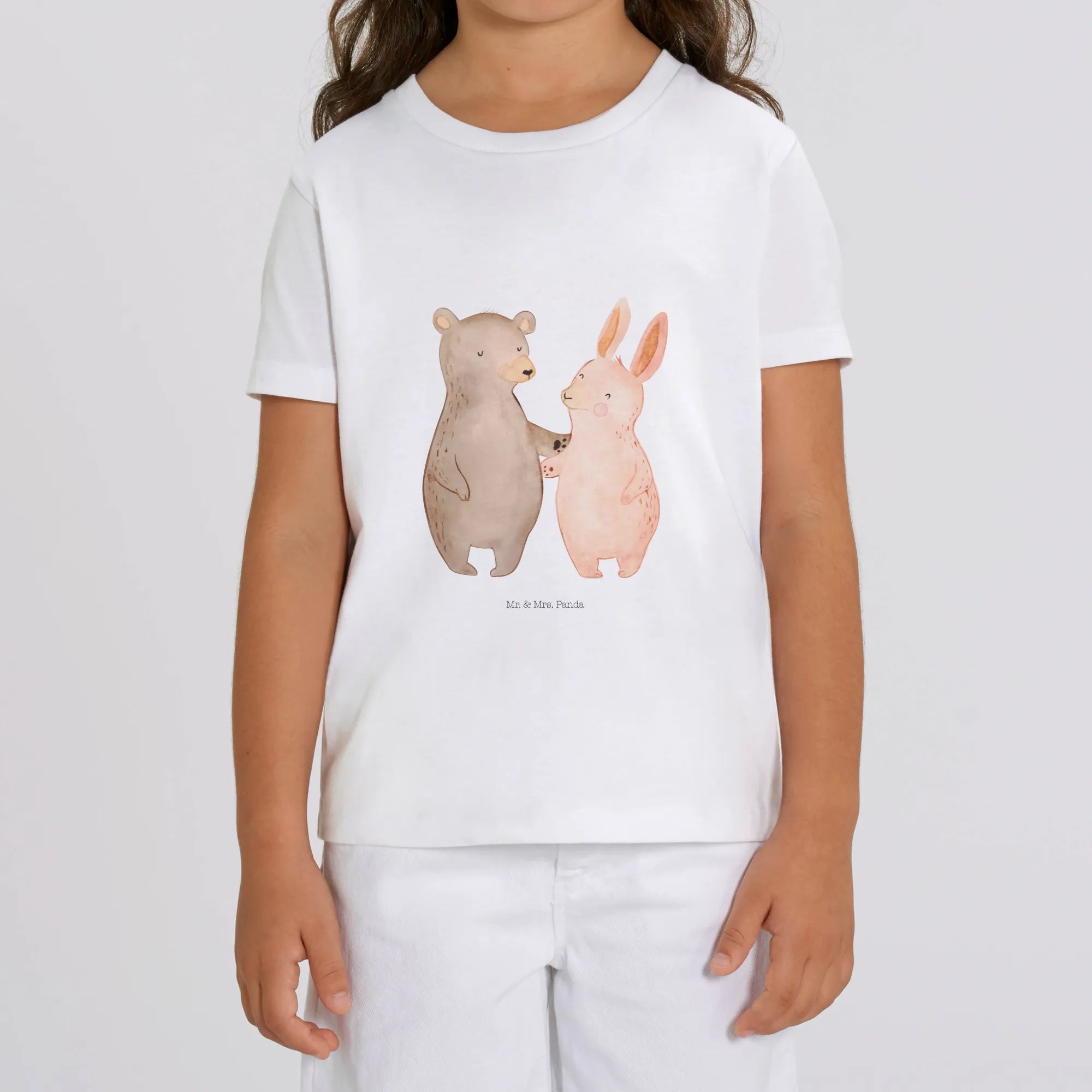 Das wunderbare Organic Kinder T-Shirt "Bär Hase Umarmen" aus der Liebe Kollektion von Mr. & Mrs. Panda ist das perfekte Geschenk für jeden kleinen Schatz. Dieses T-Shirt begeistert nicht nur durch sein süßes Motiv, in dem ein Bär und ein Hase sich liebevoll umarmen, sondern bringt auch die Botschaft zum Ausdruck: "Du bist für immer mein allerbester Freund!"