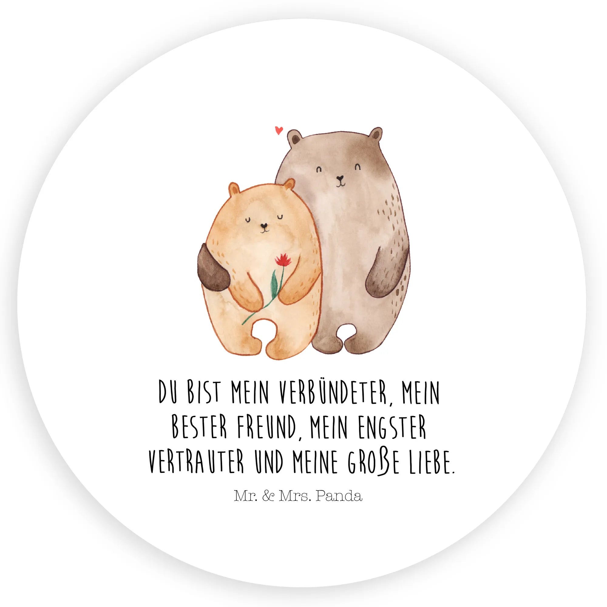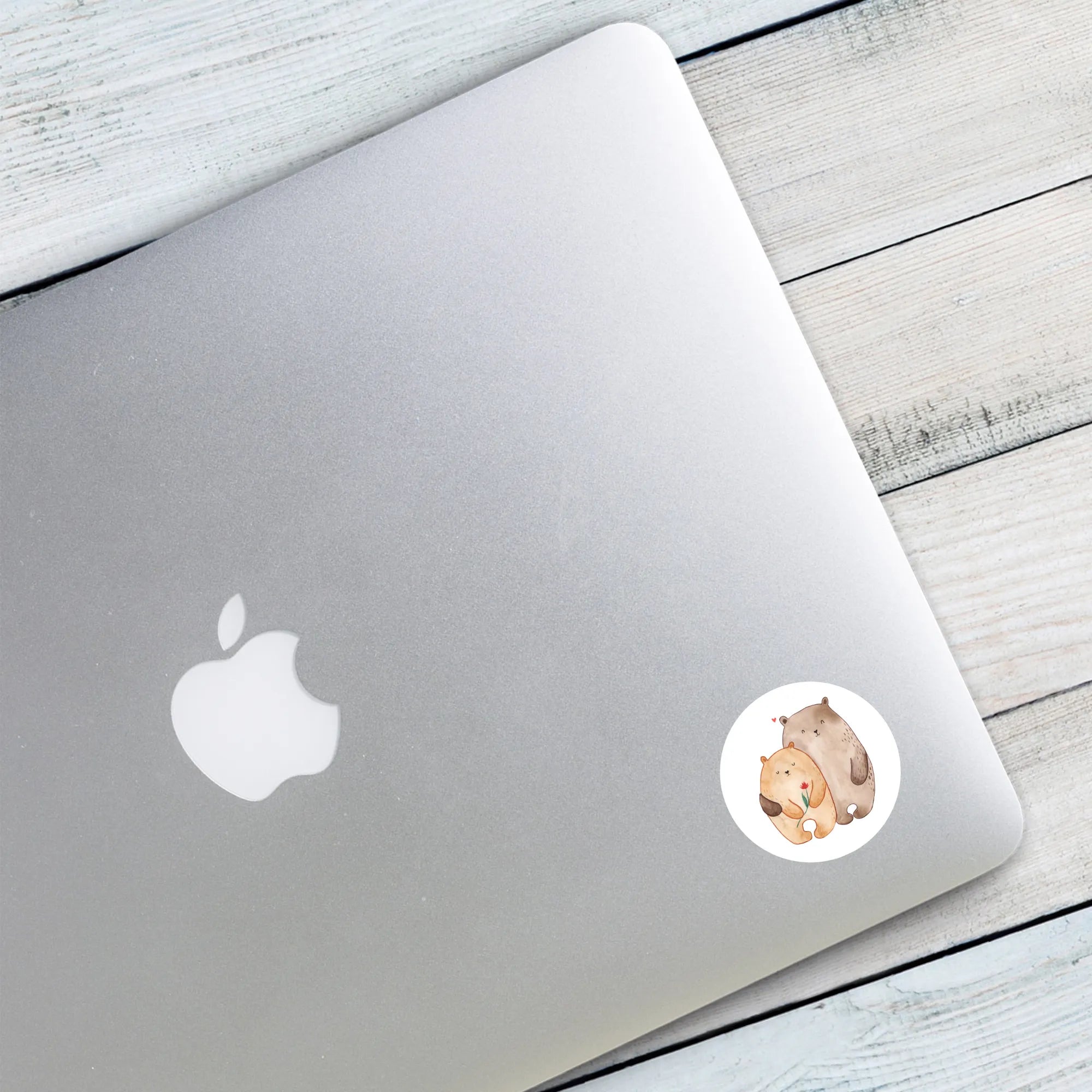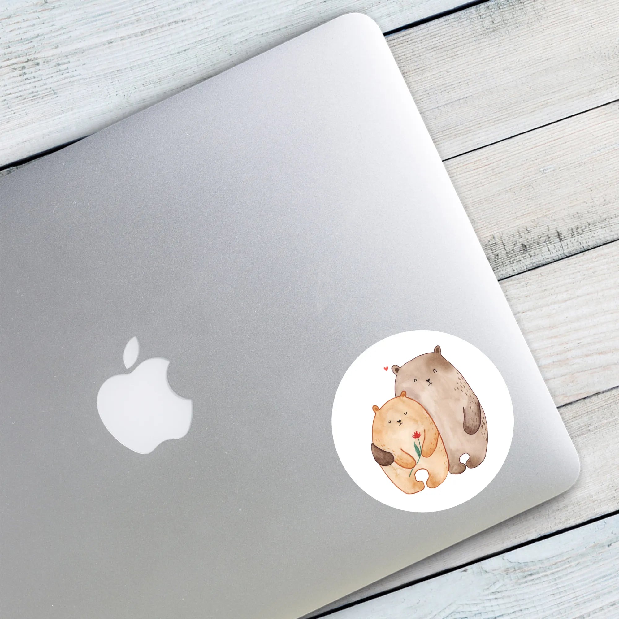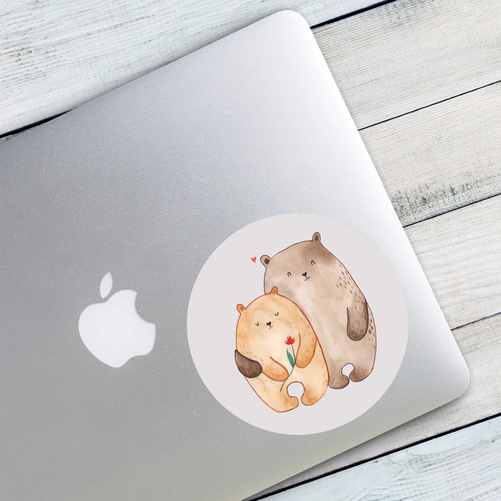 Rund Aufkleber Bären Liebe - 80mm Rund Aufkleber - mit Spruch - Weiß