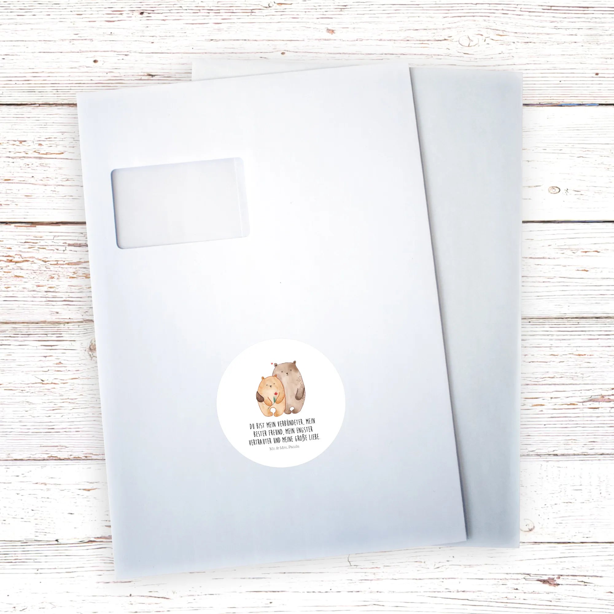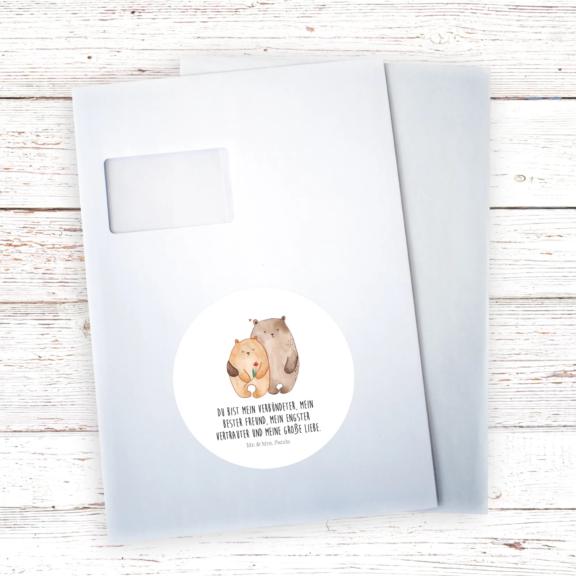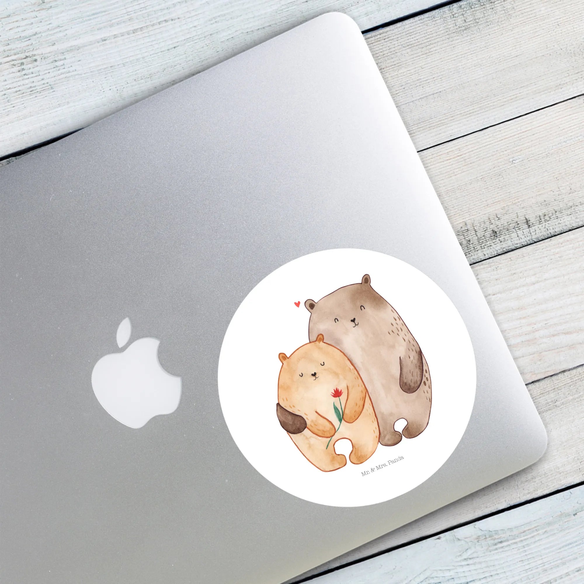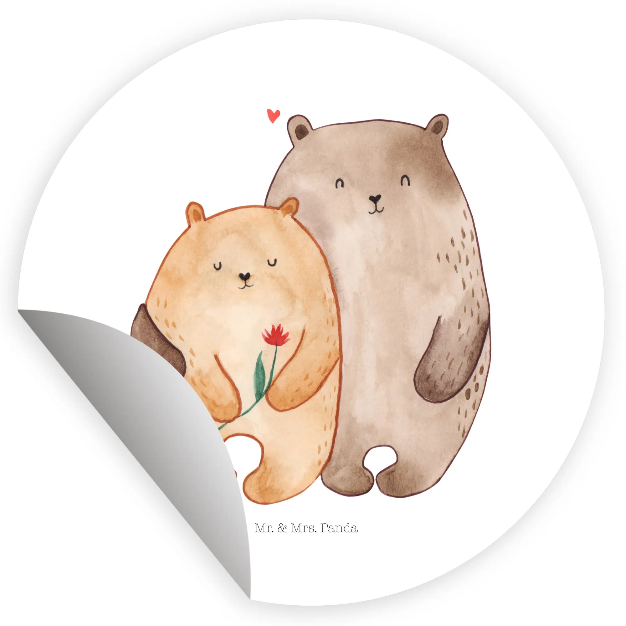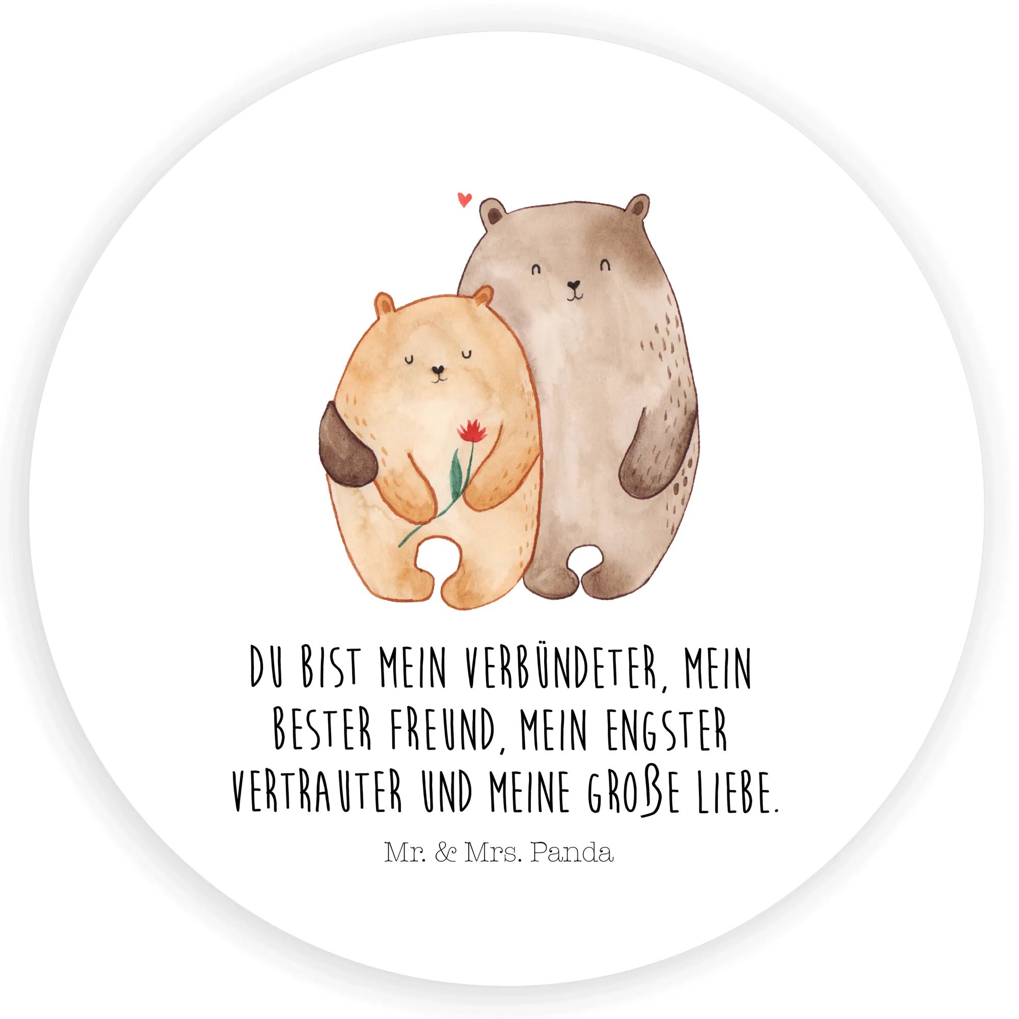Rund Aufkleber Bären Liebe - 80mm Rund Aufkleber - mit Spruch - Weiß