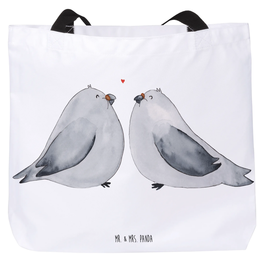 Ein wunderschöner Shopper von Mr. & Mrs. Panda: Die Turteltauben aus der Liebe-Kollektion schmiegen sich zärtlich aneinander und bringen Romantik in Deinen Alltag. Auf hellem Hintergrund zeigen zwei stilisierte Vögel in Grau- und Weißtönen ihre Zuneigung — ein kleines rotes Herz schwebt zwischen ihren Schnäbeln und symbolisiert Verbundenheit und Liebe.