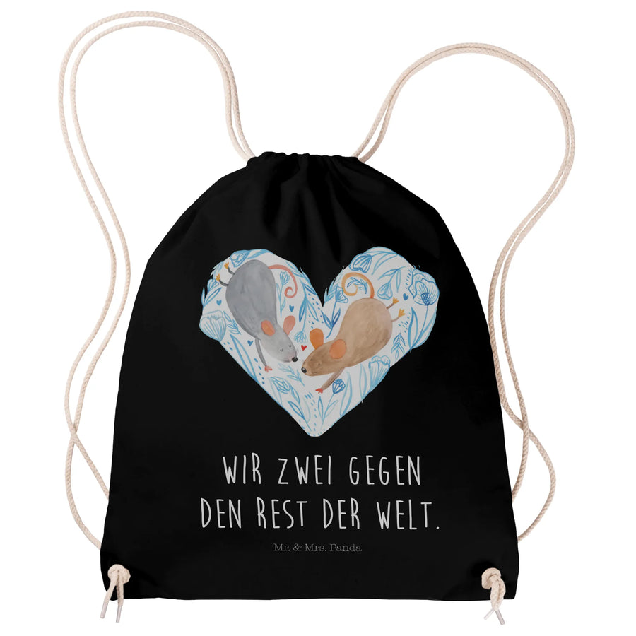 Sportbeutel Mäuse Herz - mit Spruch - Schwarz