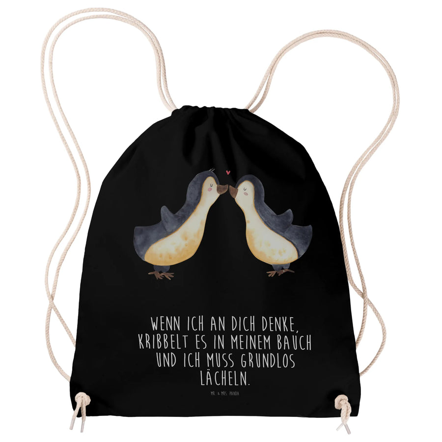 Sportbeutel Pinguine Kuss - Schwarz