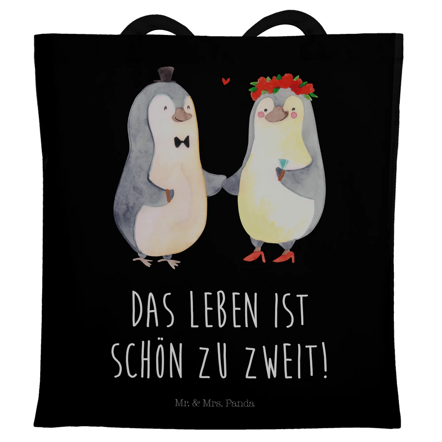 Tragetasche Pinguin Heirat - mit Spruch - Schwarz