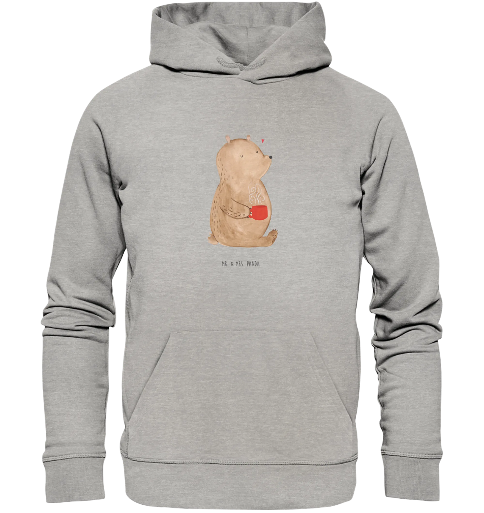 Der Organic Hoodie mit dem bezaubernden Motiv "Bär Morgenkaffee" von Mr. & Mrs. Panda ist das perfekte Geschenk für alle, die die Liebe feiern möchten!