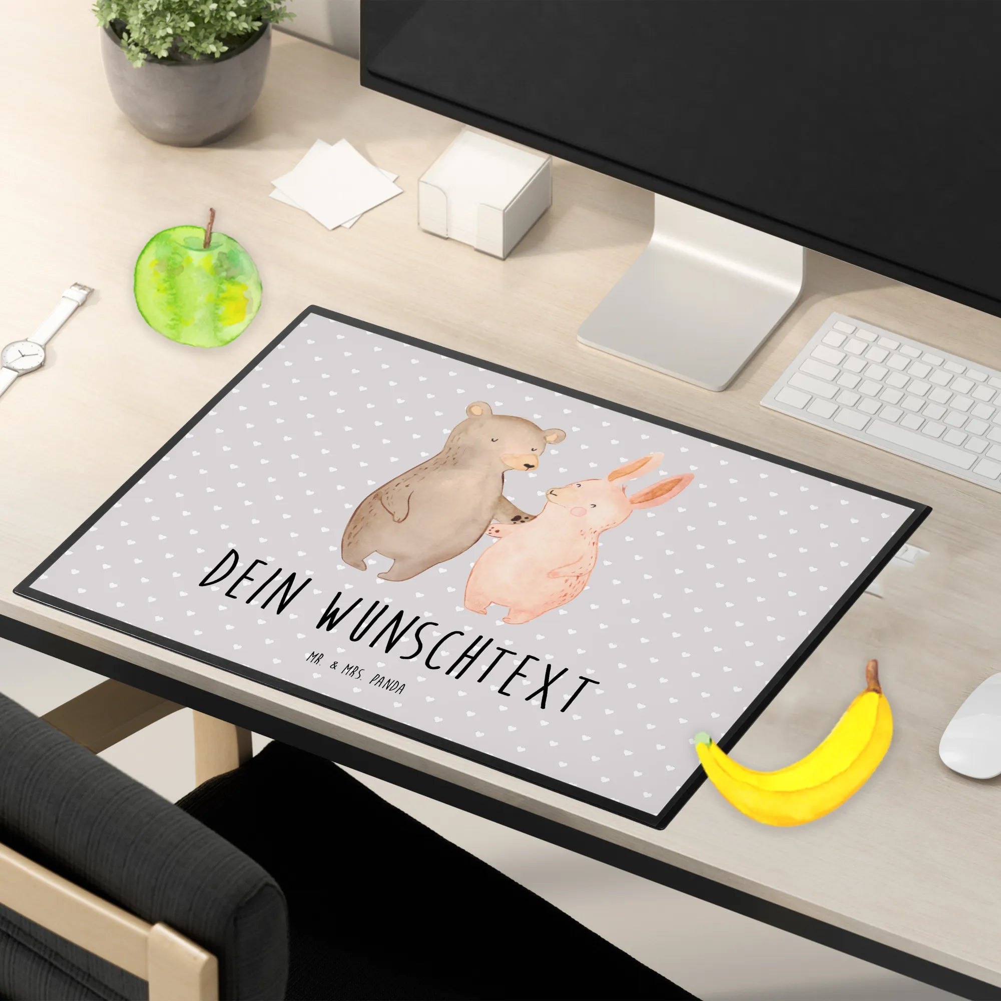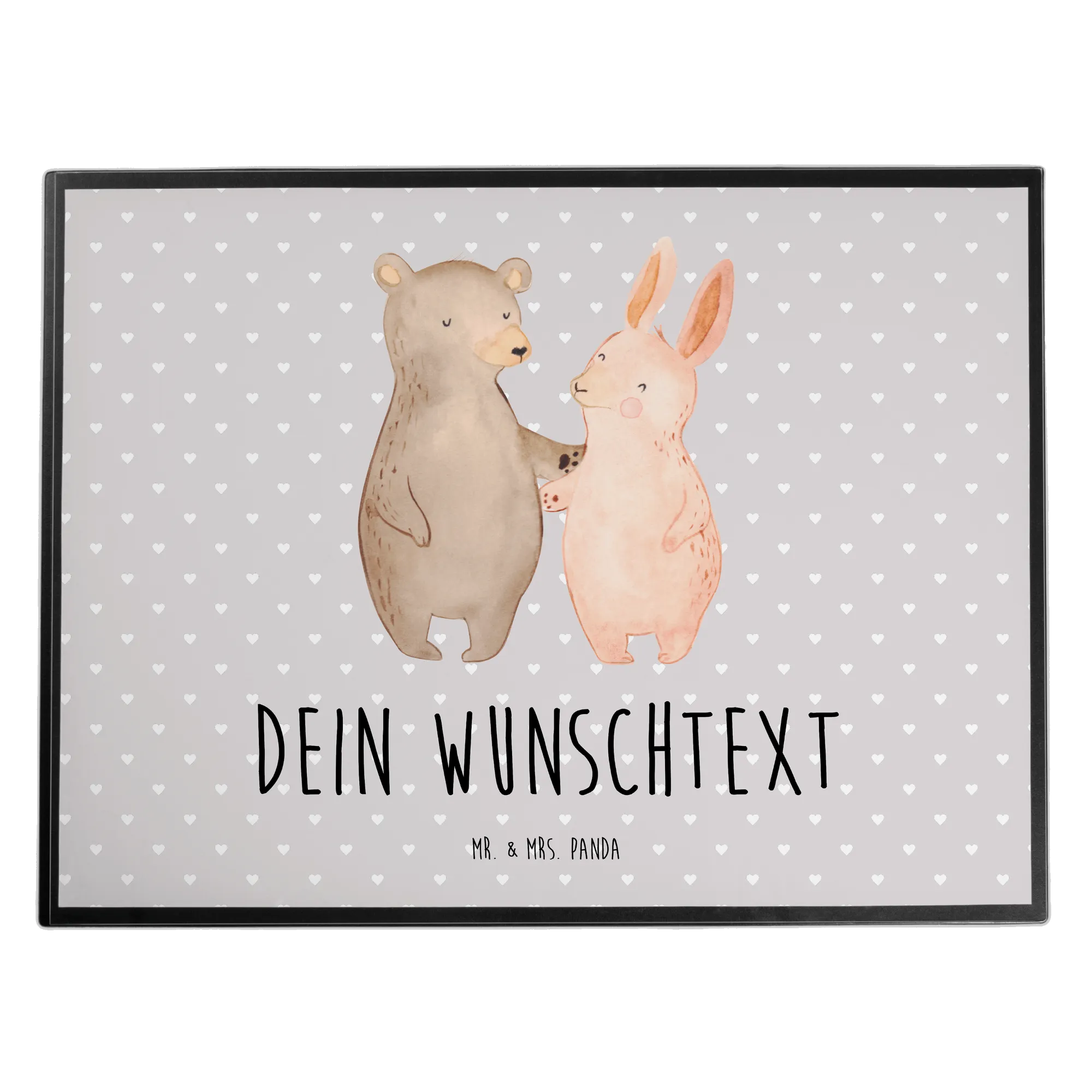 Darf ich dir unsere personalisierte Schreibtischunterlage mit dem süßen Motiv "Bär Hase Umarmen" aus der Kollektion Liebe vorstellen?