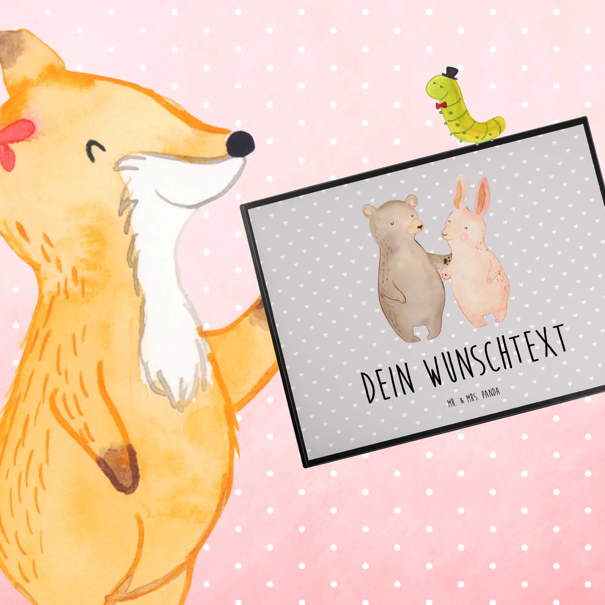 Schreibtischunterlage selbst gestalten Bär und Hase Umarmen