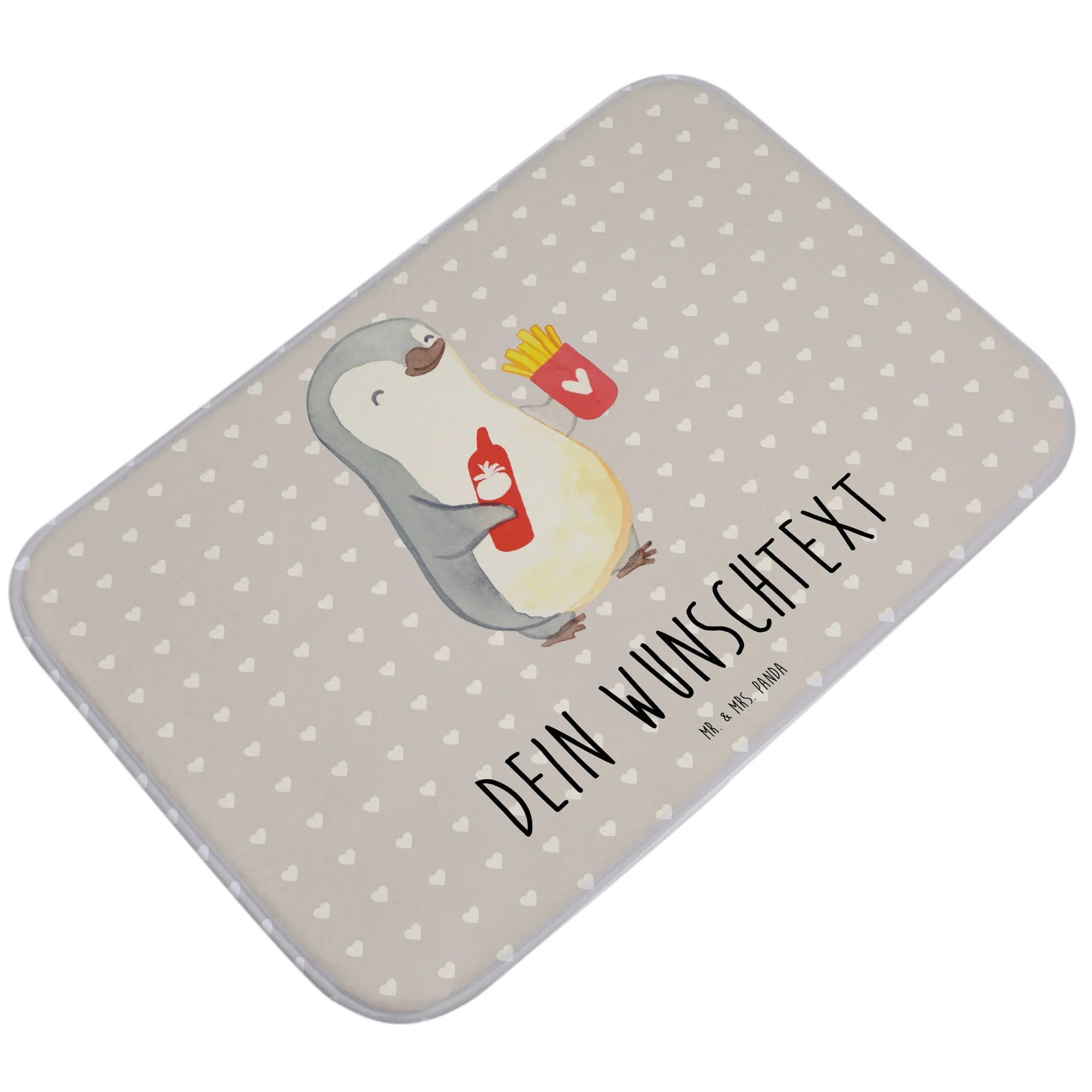 Entdecke die perfekte Mischung aus Funktionalität und Liebe mit unserem personalisierten Badvorleger Pinguin Pommes von Mr. & Mrs. Panda!