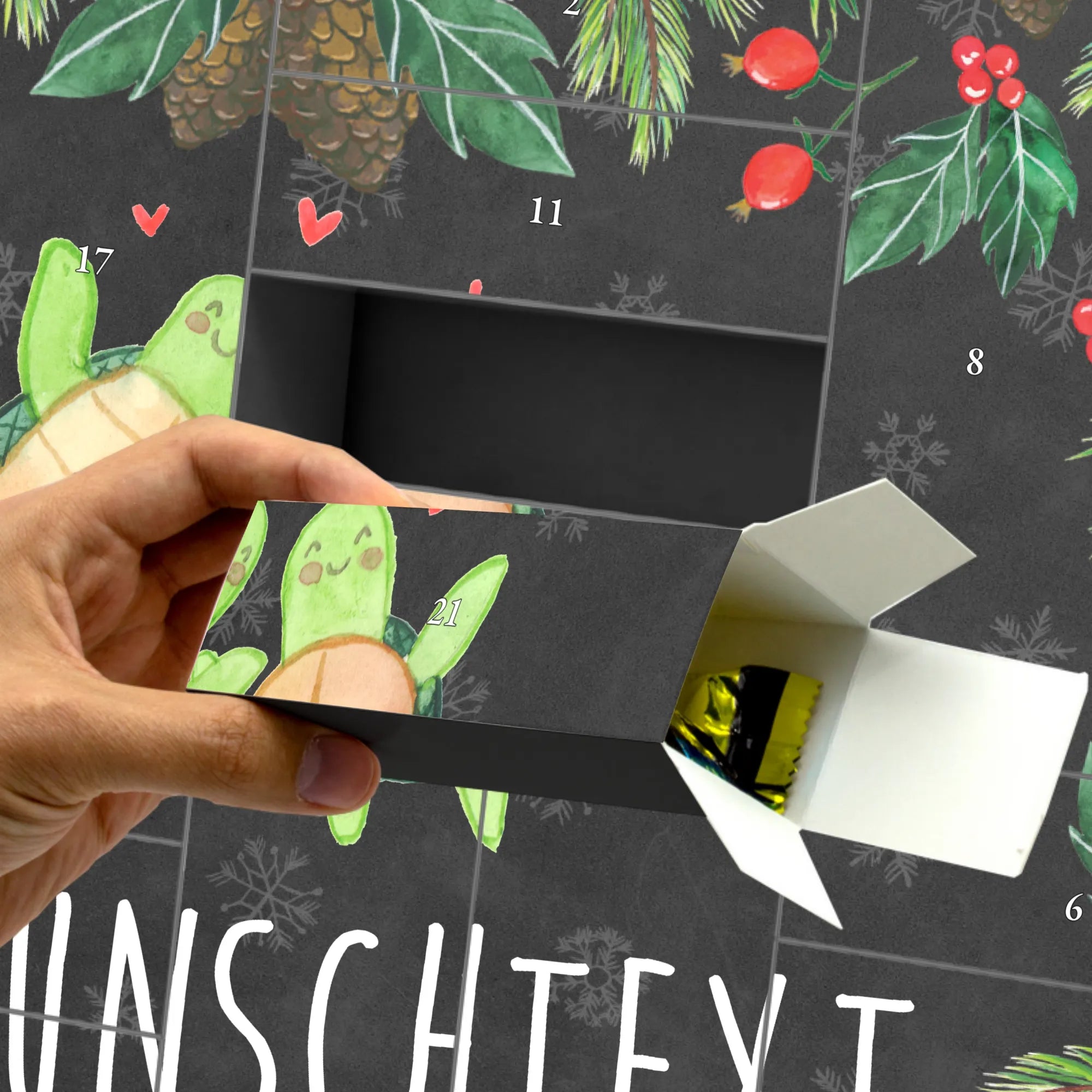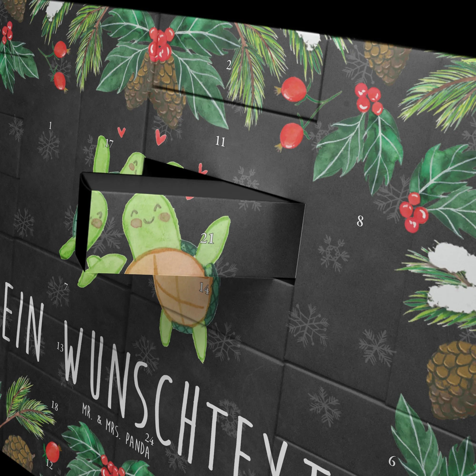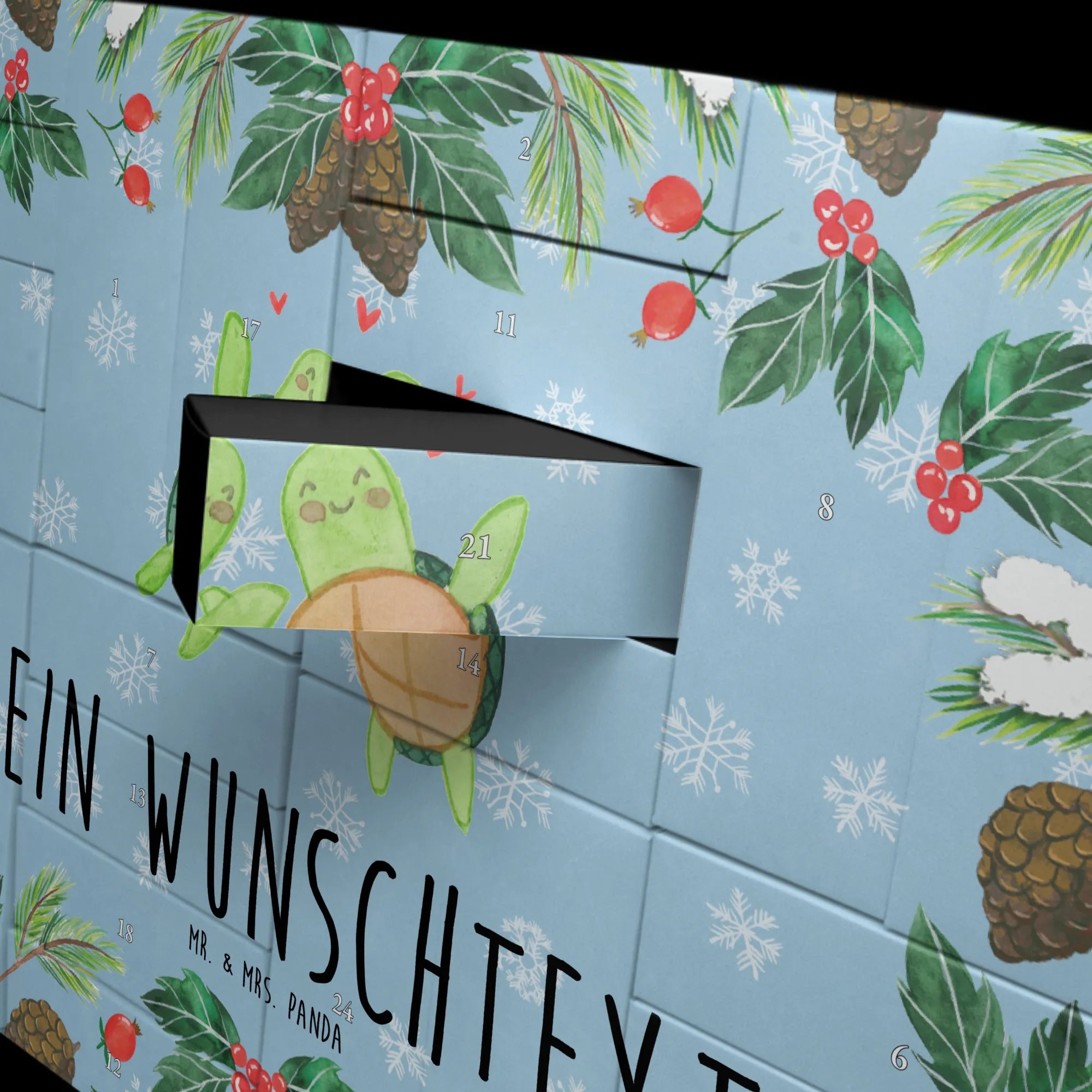 Mach die Adventszeit zu etwas Besonderem und verschenke jeden Tag ein kleines Stück Liebe – mit dem personalisierbaren Adventskalender „Schildkröten Paar“ von Mr. & Mrs. Panda. 🐢❤️