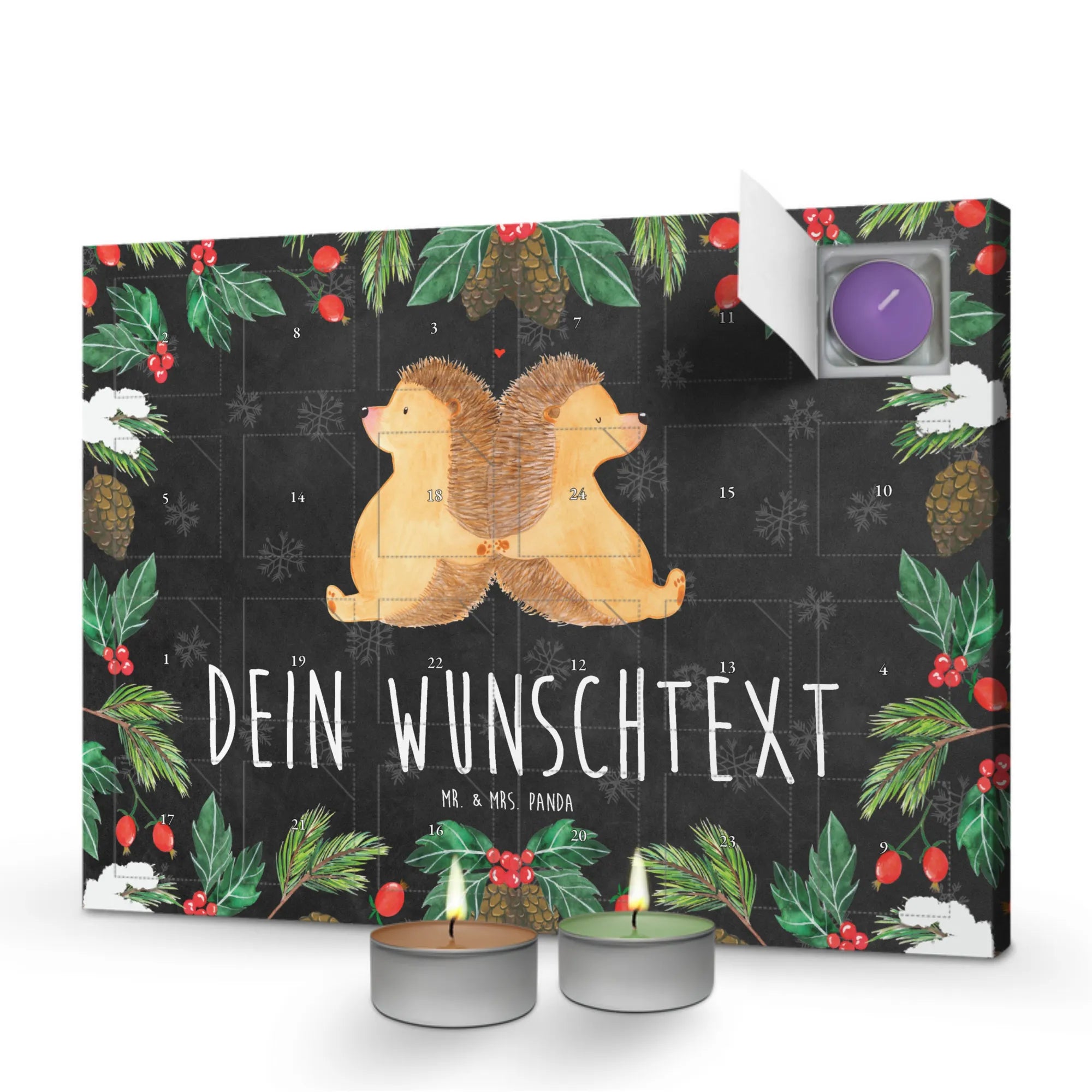 Personalisierter Duftkerzen Adventskalender Igel händchenhaltend - Eisblau
