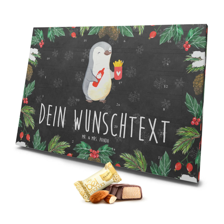 Personalisierter Marzipan Adventskalender Pinguin Pommes - Schwarz