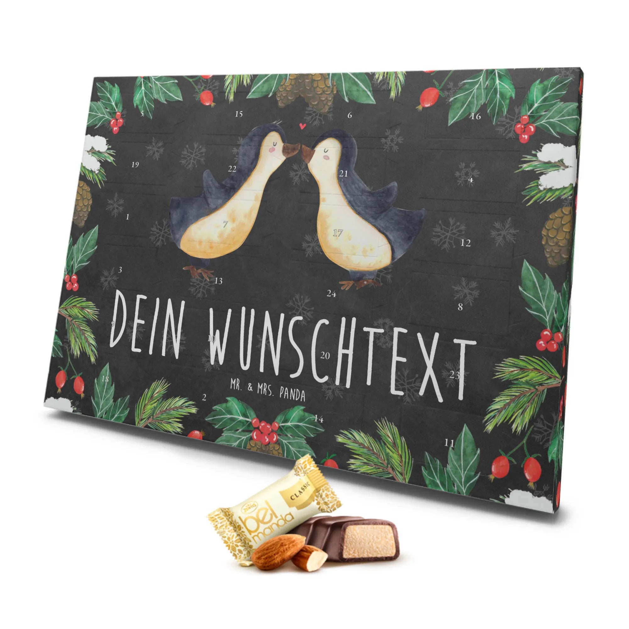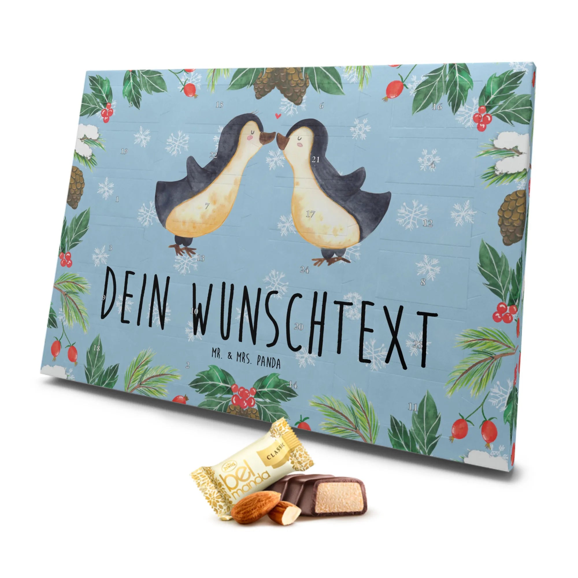 Der personalisierte Marzipan Adventskalender 'Pinguine Kuss' von Mr. & Mrs. Panda ist das perfekte Geschenk für deine Liebsten zu besonderen Anlässen wie dem Valentinstag, dem Jahrestag oder dem Hochzeitstag. Verwöhne deine Freundin oder deinen Partner mit einem ganz besonderen Liebesbeweis!
