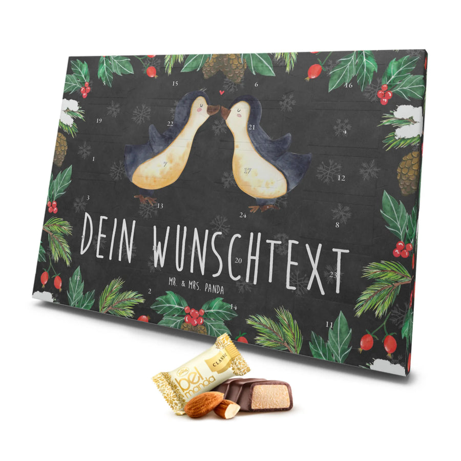 Personalisierter Marzipan Adventskalender Pinguine Kuss - Schwarz