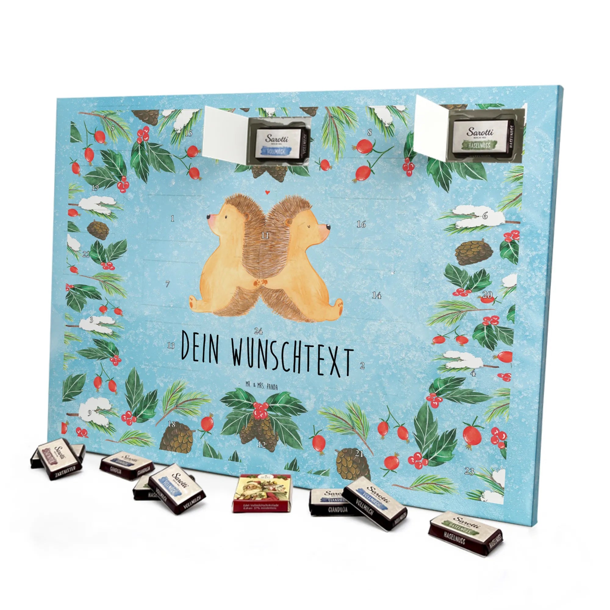 Personalisierter Schoko Adventskalender „Igel händchenhaltend“ – aus der liebevollen Liebe-Kollektion von Mr. & Mrs. Panda. Dieses niedliche Motiv zeigt zwei Igel, die Händchen halten, und vermittelt Wärme, Nähe und gemeinsame Abenteuer. Ideal als Adventskalender mit Namen für Paare, Freundin, Freund oder den Lieblingsmenschen. 💕