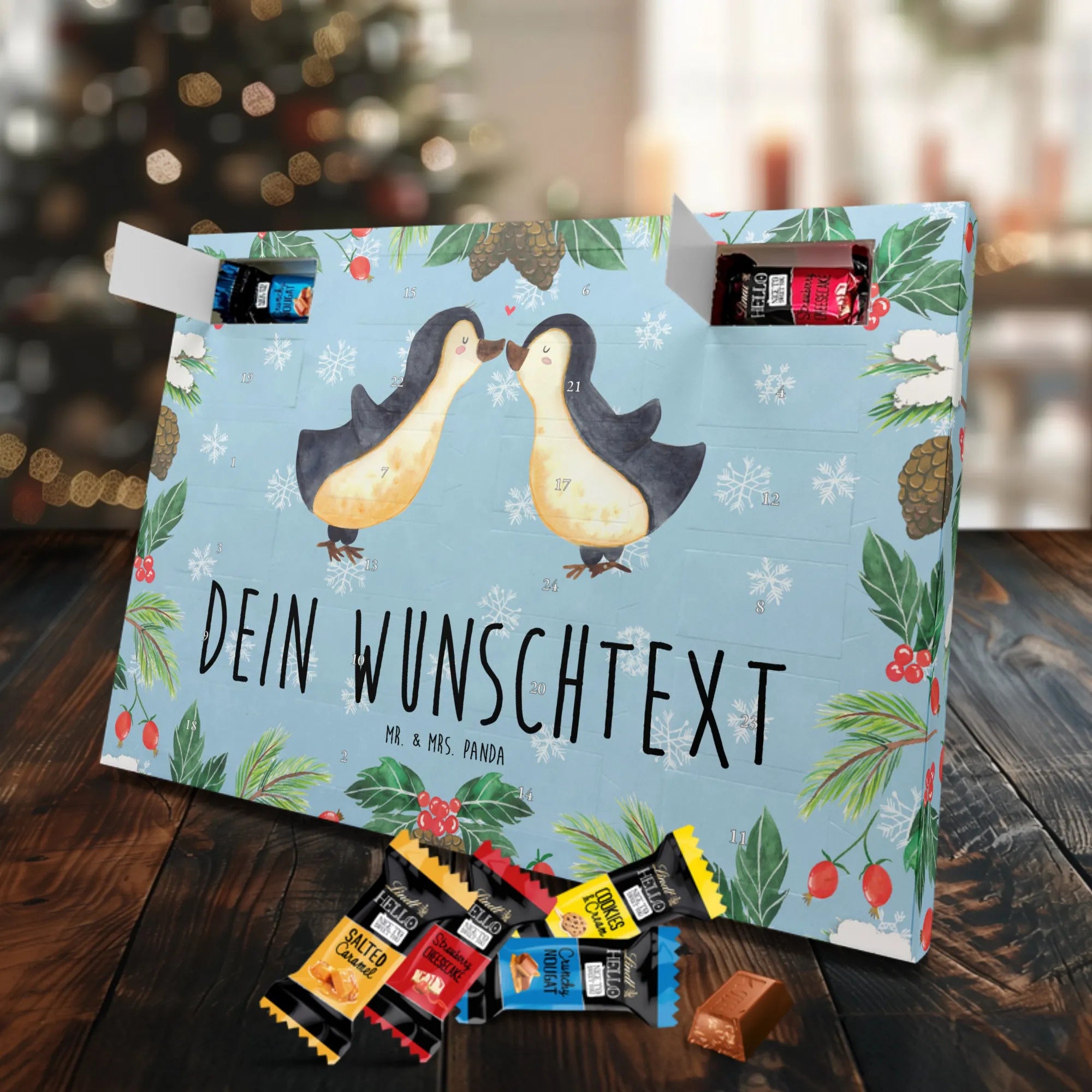 Adventskalender mit Namen Pinguin Liebe - Classic - Eisblau