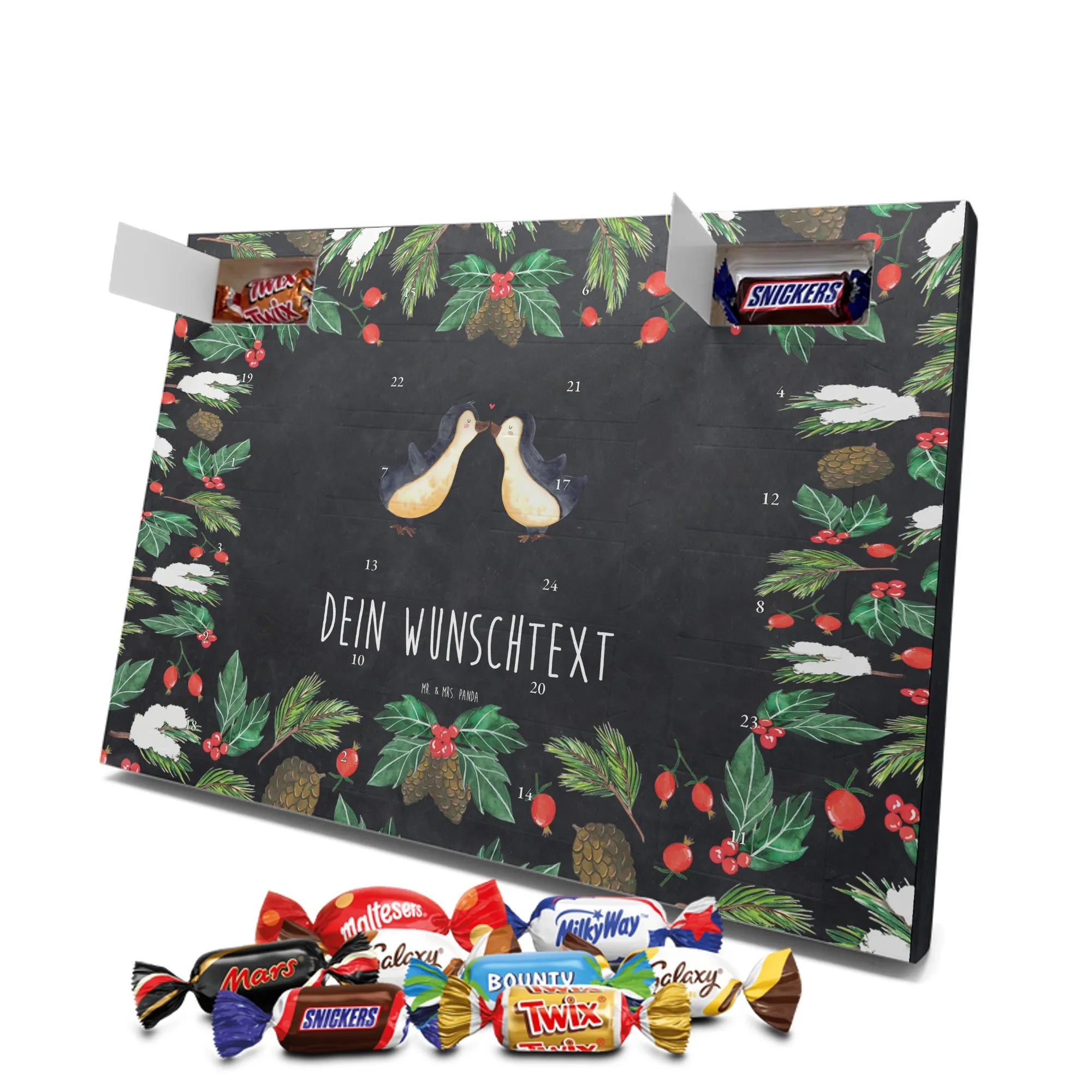 Personalisierter Schoko-Adventskalender von Mr. & Mrs. Panda – liebevoll gestaltet und ideal als individuelles Geschenk in der Adventszeit. Wir bedrucken den Kalender mit zauberhaften Motiven & herzlichen Sprüchen und personalisieren ihn mit deinem Wunschnamen oder Wunschtext. Die hochwertige Druckqualität kombiniert mit einer seidenmatten Oberflächenveredelung sorgt für ein edles Erscheinungsbild, und die bedruckten Seitenflächen geben dem Motiv zusätzlichen Charme. Der Kalender kann aufgehängt oder aufgestellt werden, sodass du ihn flexibel platzieren kannst. Gefüllt ist der Kalender mit Celebrations, die 24 hochwertige Überraschungen in 8 verschiedenen Sorten beinhalten: Maltesers, Mars, Snickers, Twix, Milky Way, Bounty, Galaxy und Galaxy Caramel. Maße: 325 mm x 225 mm x 27 mm – handlich und doch großzügig für die kleinen Leckereien hinter den Türchen. Ob für Kinder, Partner oder beste Freunde: dieser personalisierte Schoko-Adventskalender macht das Warten auf Weihnachten bunter und leckerer. Verschenke eine persönliche Erinnerung und jeden Tag ein kleines Schokoladen-Glück!
