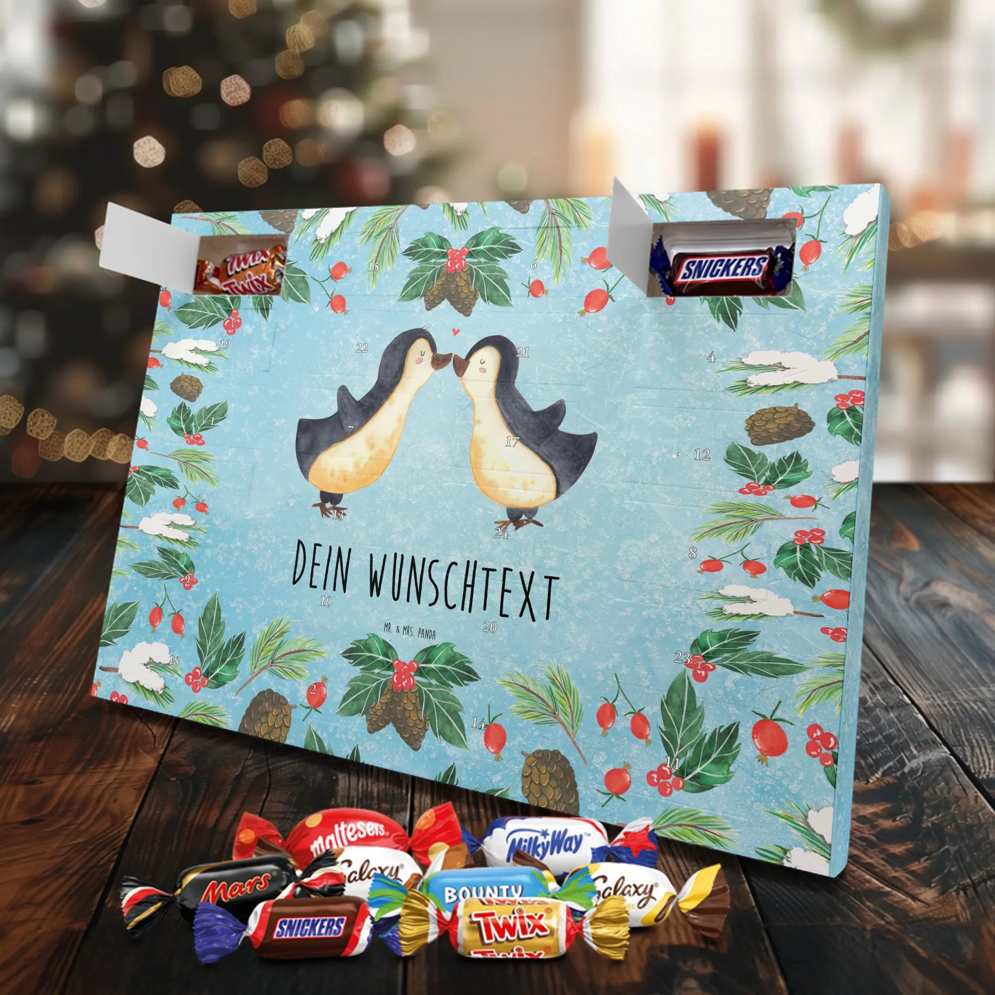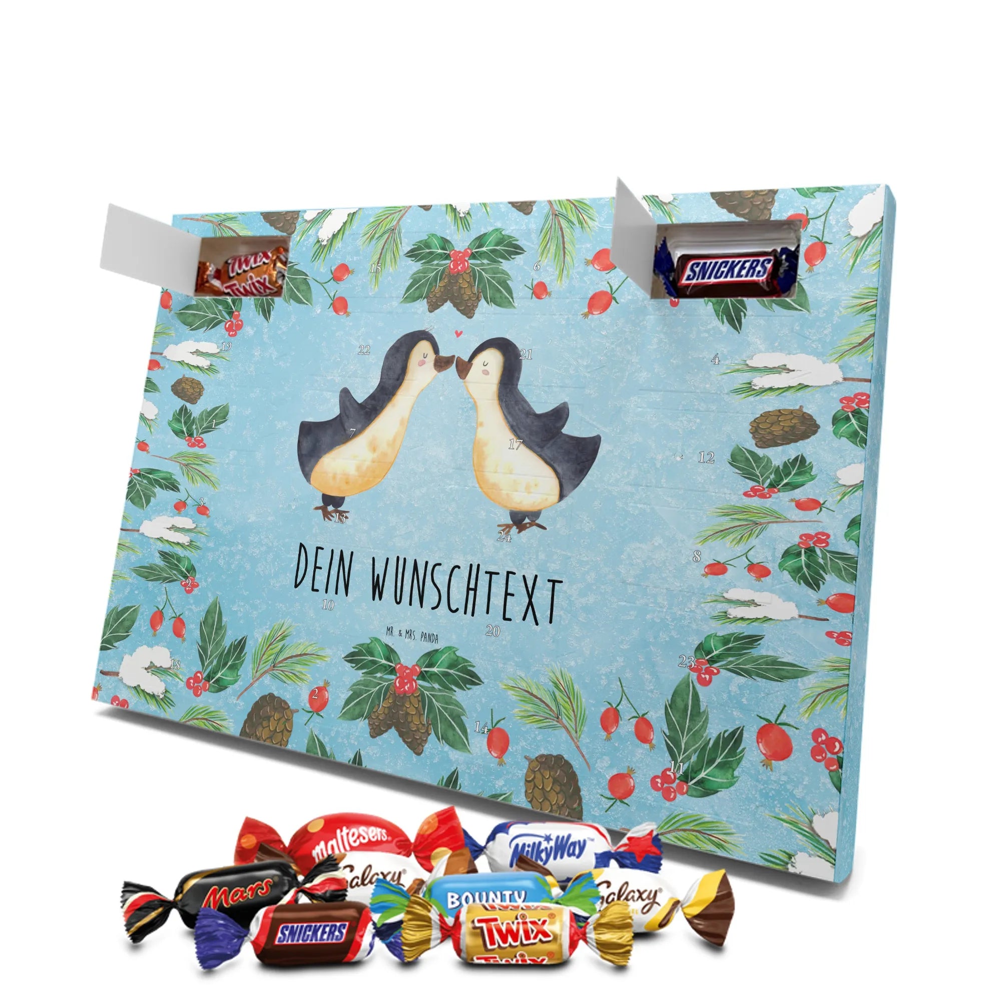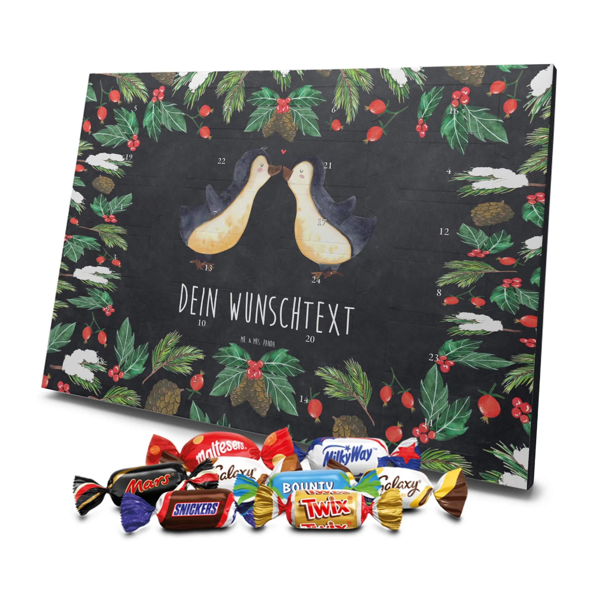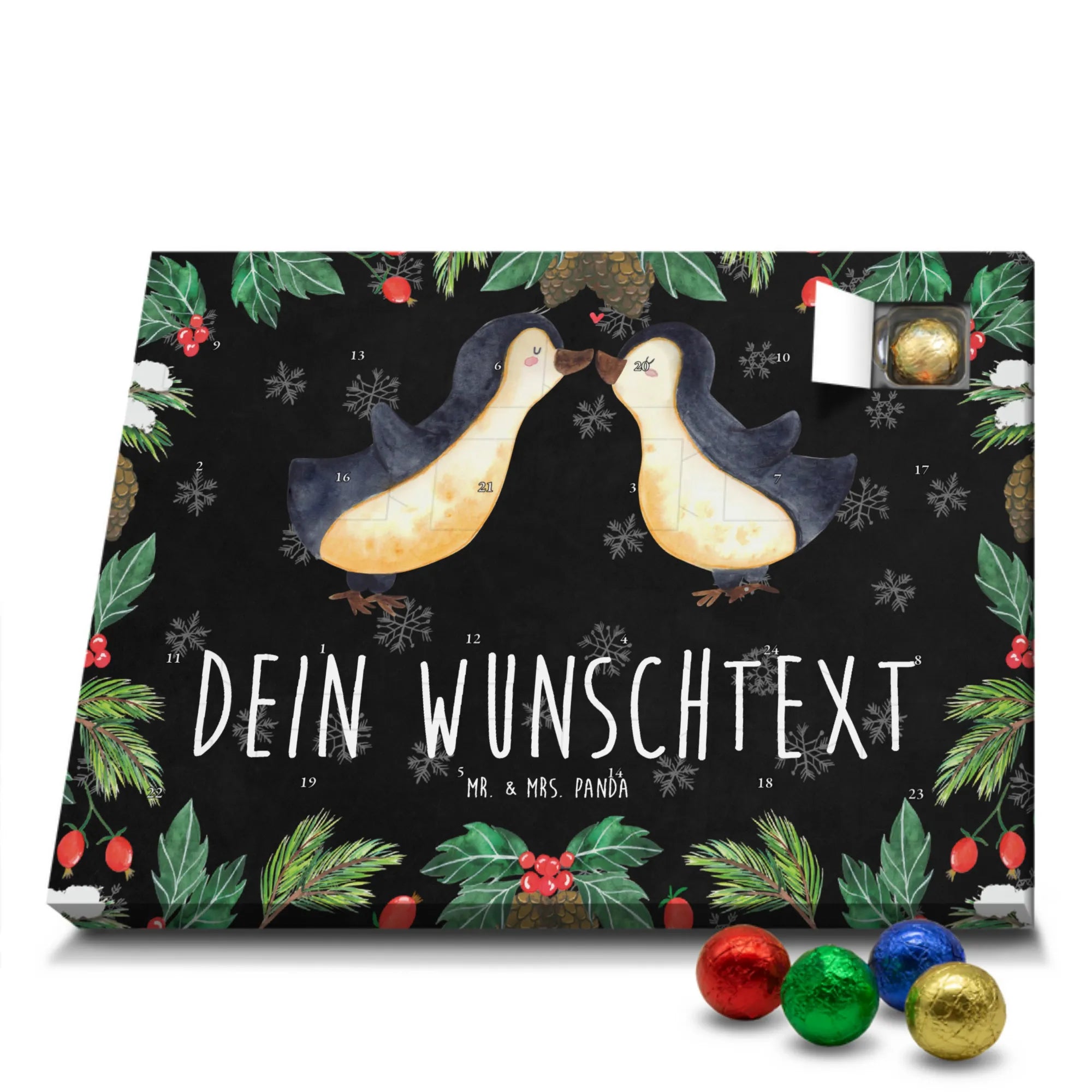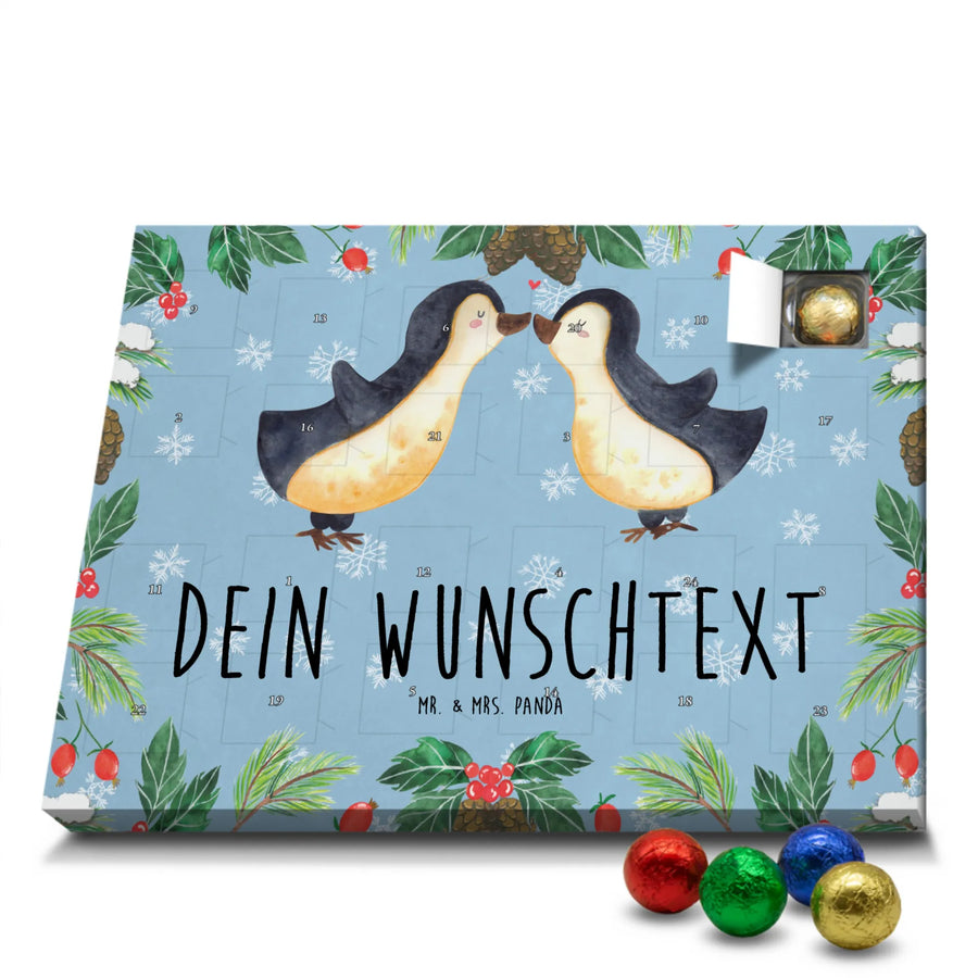 Personalisierter Schoko Adventskalender „Pinguine Kuss“ – das liebevolle Geschenk aus der Mr. & Mrs. Panda Liebe-Kollektion. Auf dem Motiv kuscheln zwei handgezeichnete Pinguine und schenken sich einen zarten Kuss. Der dazugehörige Spruch „Wenn ich an dich denke, kribbelt es in meinem Bauch und ich muss grundlos lächeln.“ macht den Kalender zum täglichen Liebesgruß für deinen Schatz. ❤️