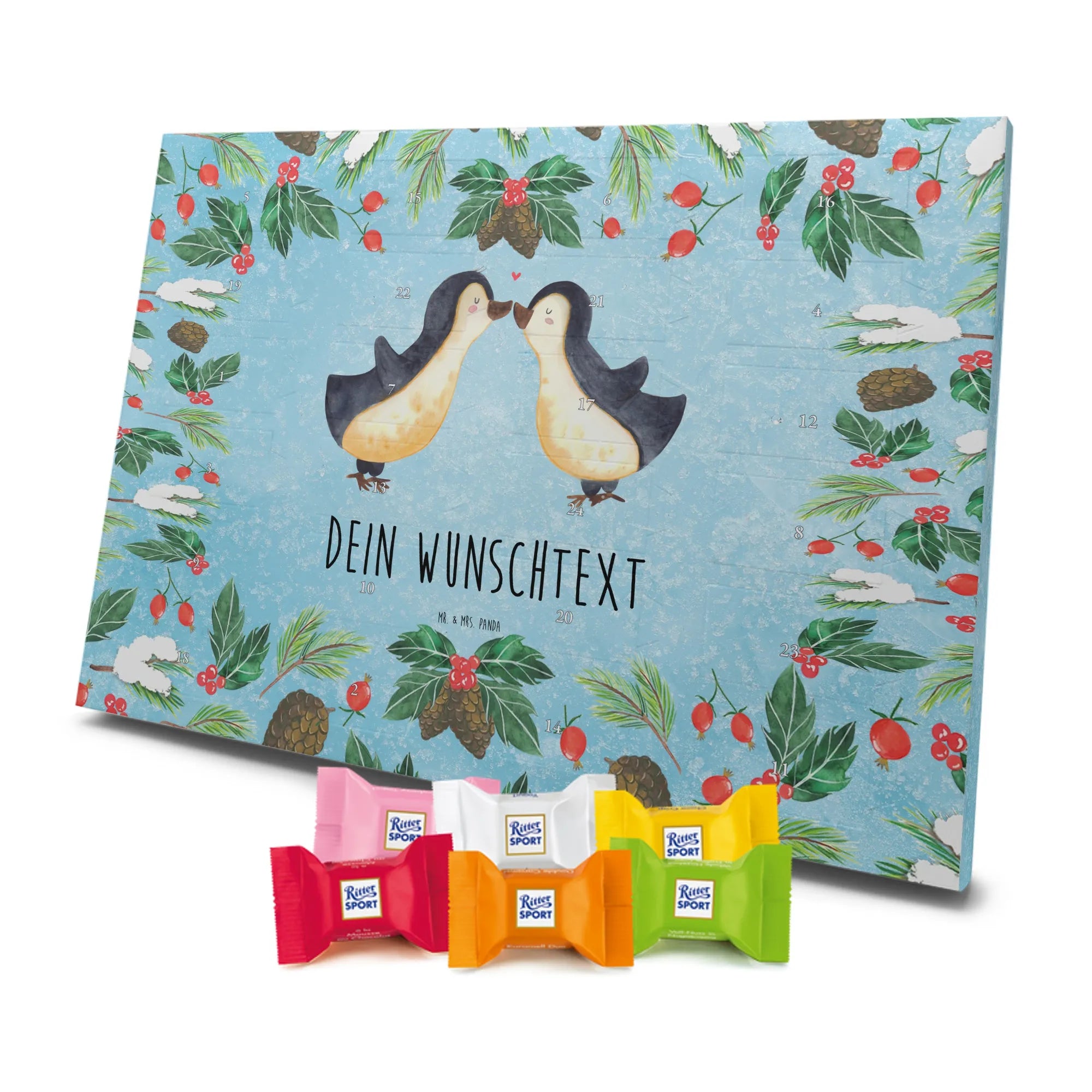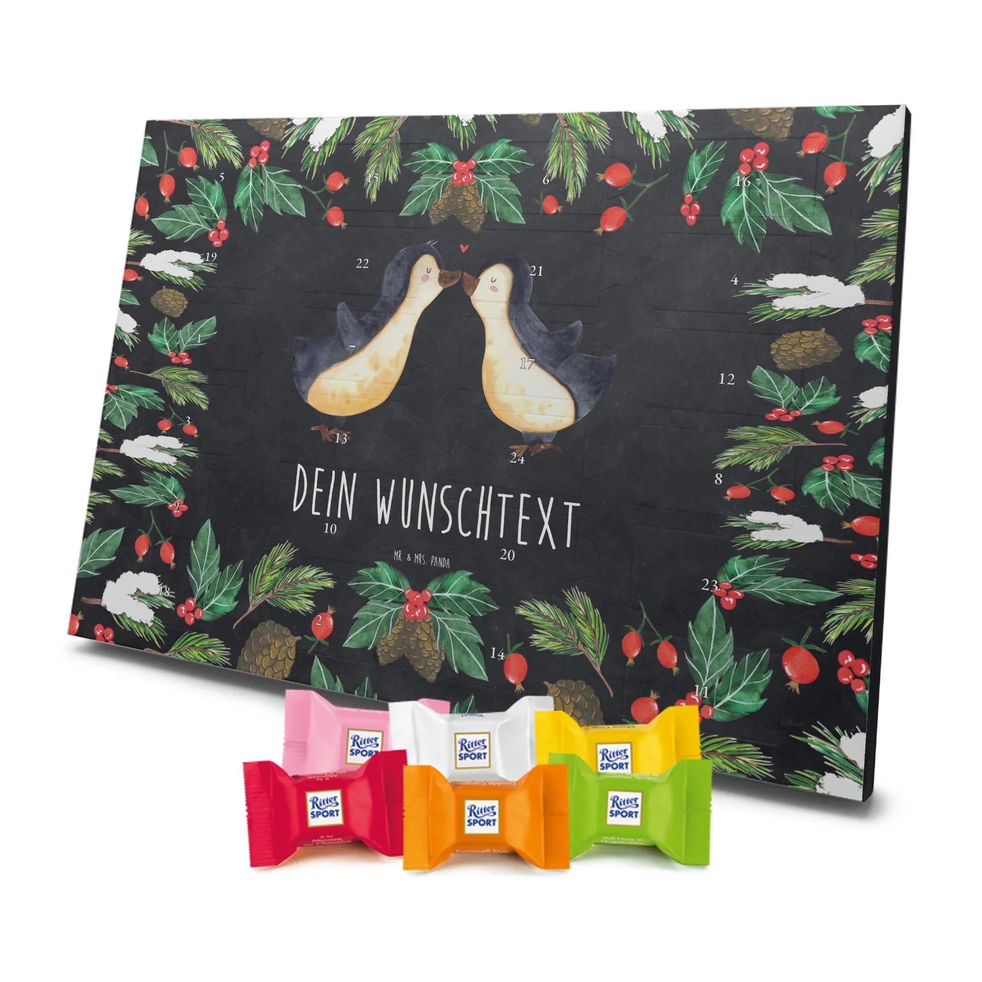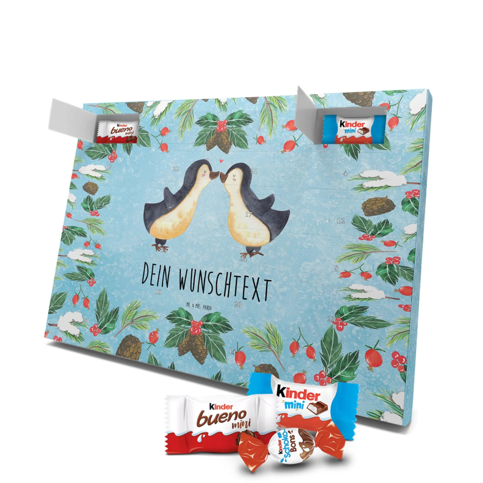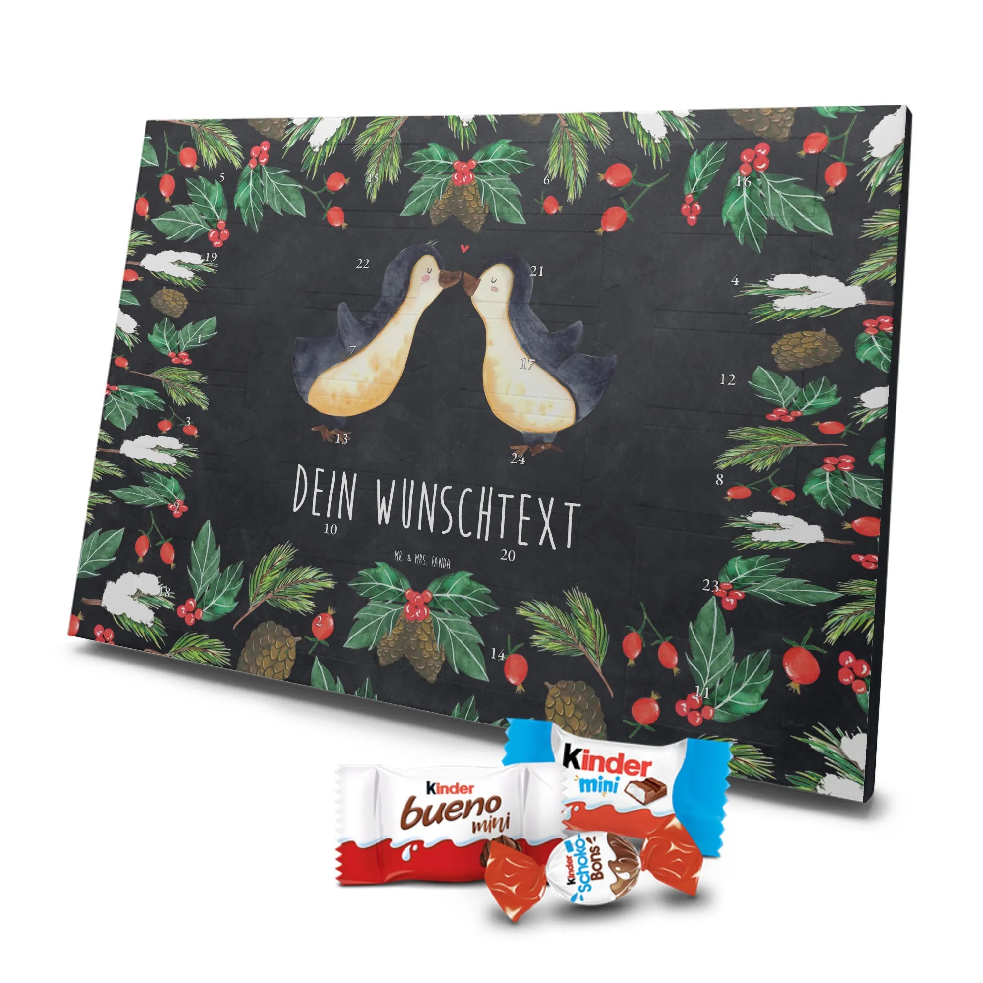 Personalisierter Schoko Adventskalender „Pinguine Kuss“ – das liebevolle Geschenk aus der Mr. & Mrs. Panda Liebe-Kollektion. Auf dem Motiv kuscheln zwei handgezeichnete Pinguine und schenken sich einen zarten Kuss. Der dazugehörige Spruch „Wenn ich an dich denke, kribbelt es in meinem Bauch und ich muss grundlos lächeln.“ macht den Kalender zum täglichen Liebesgruß für deinen Schatz. ❤️