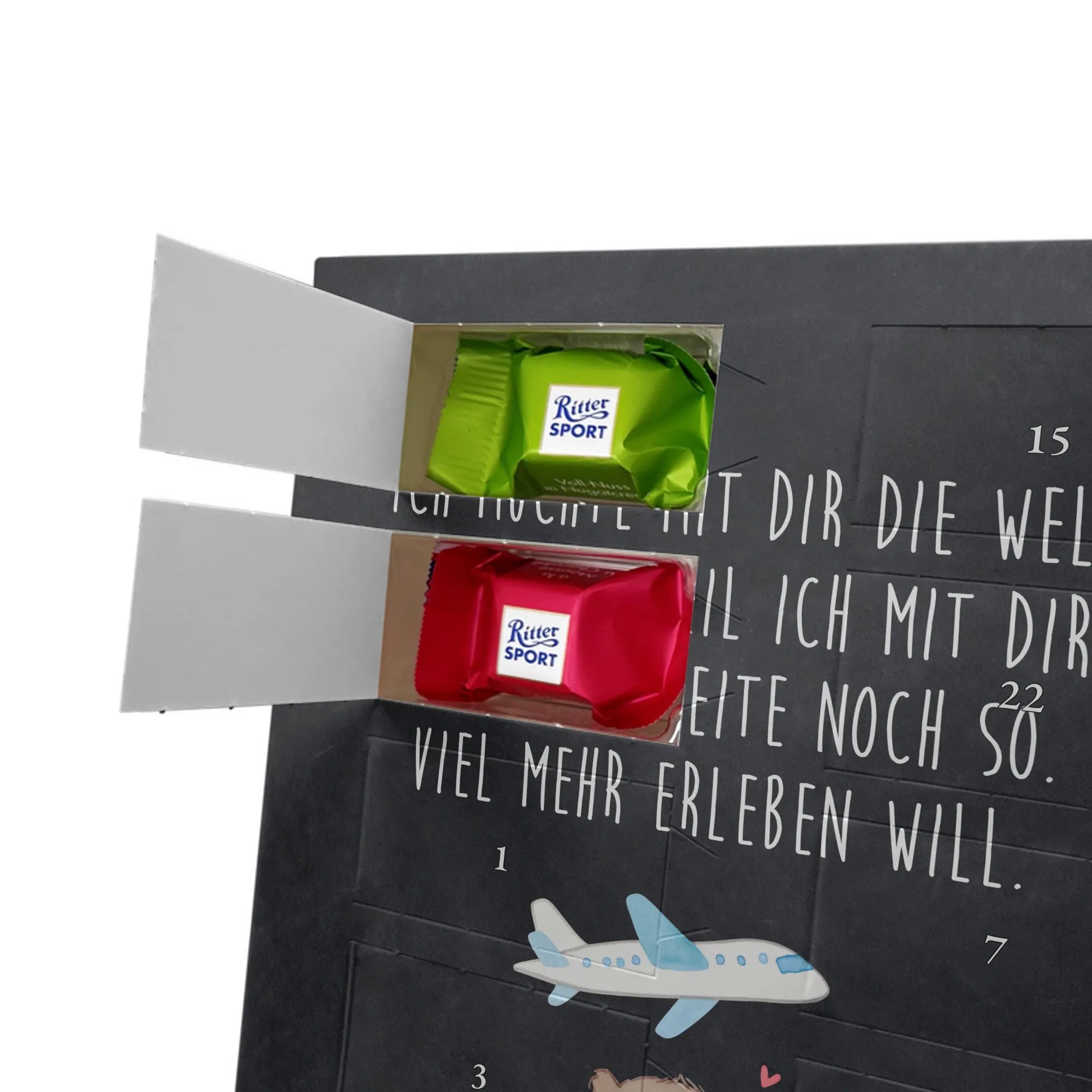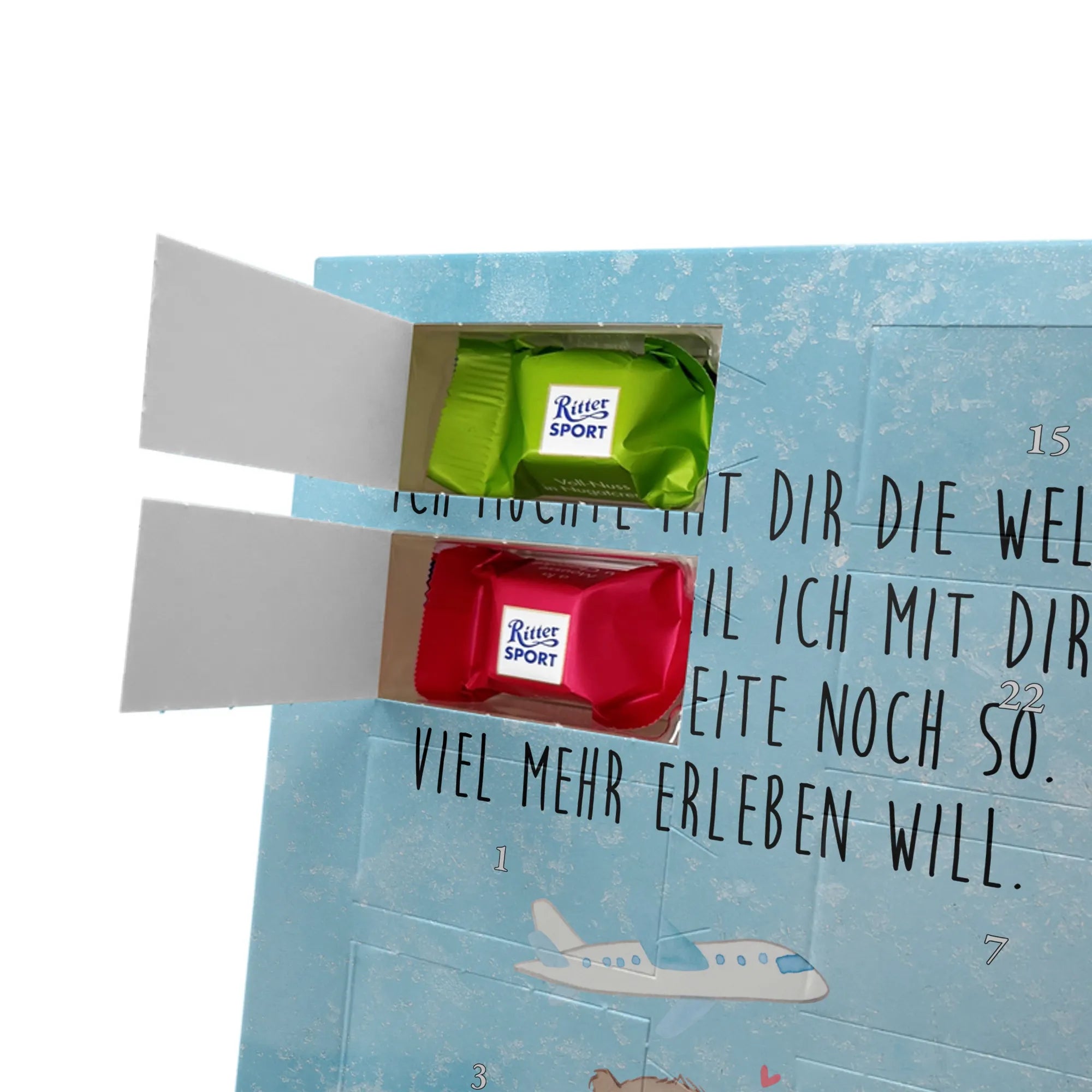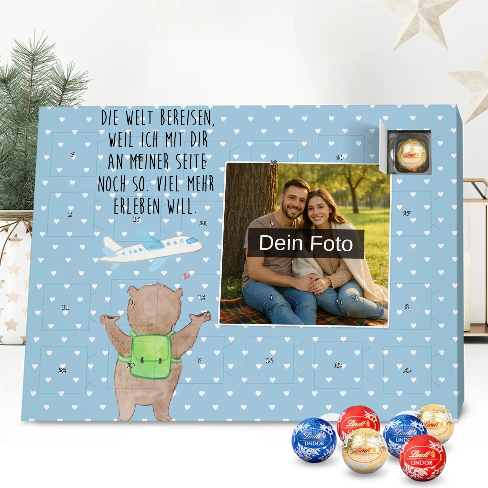 Personalisierter Schoko Foto Adventskalender Bär Flugzeug - Classic - Eisblau