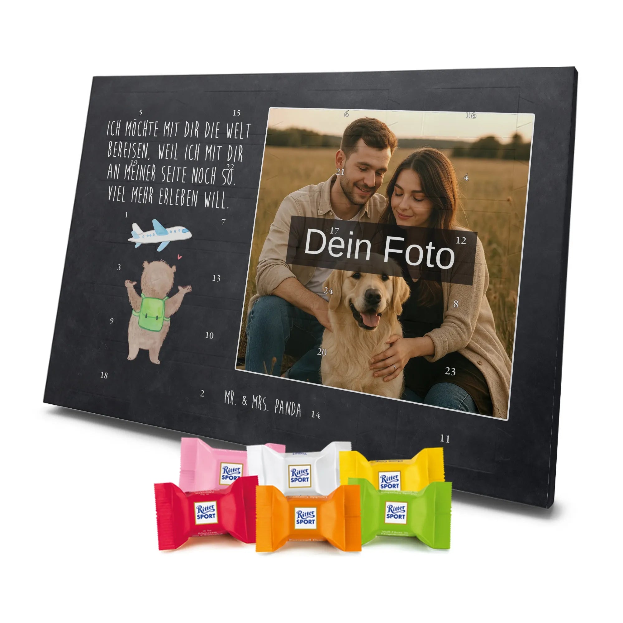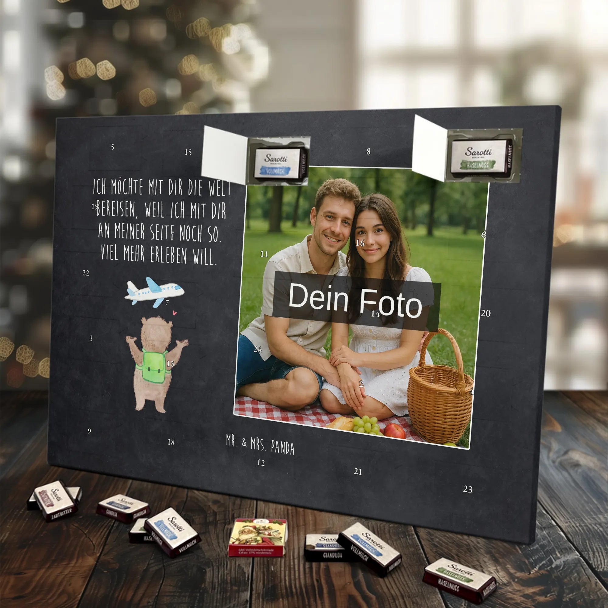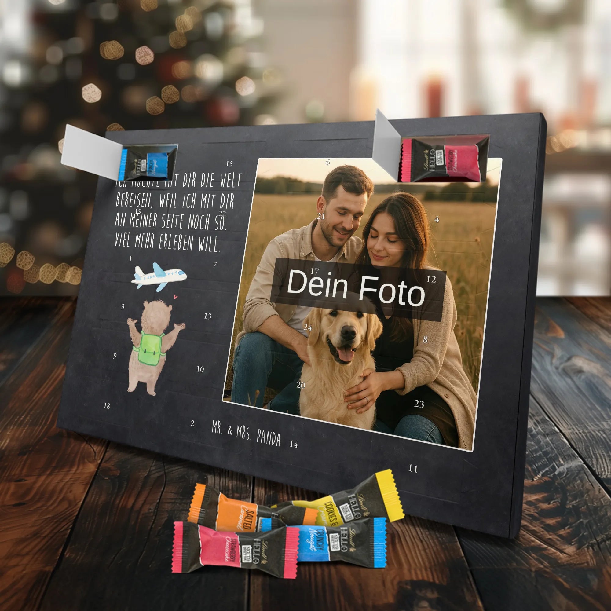 🐼 PERSONALISIERTER KALENDER: Dein Foto-Adventskalender mit 24 Schokoladentäfelchen und Mr. & Mrs. Panda Motiven.