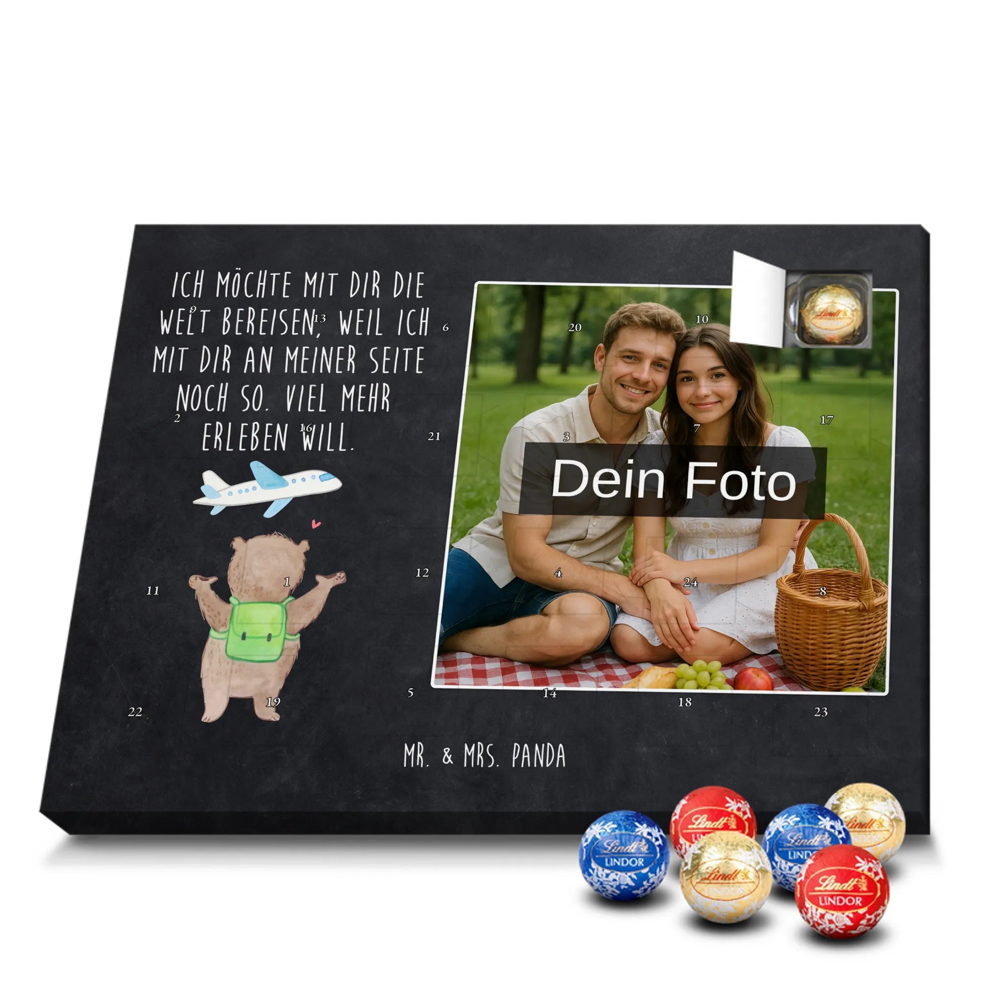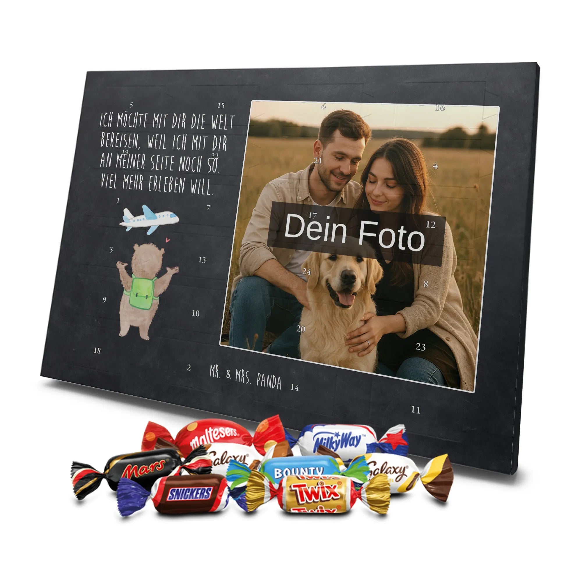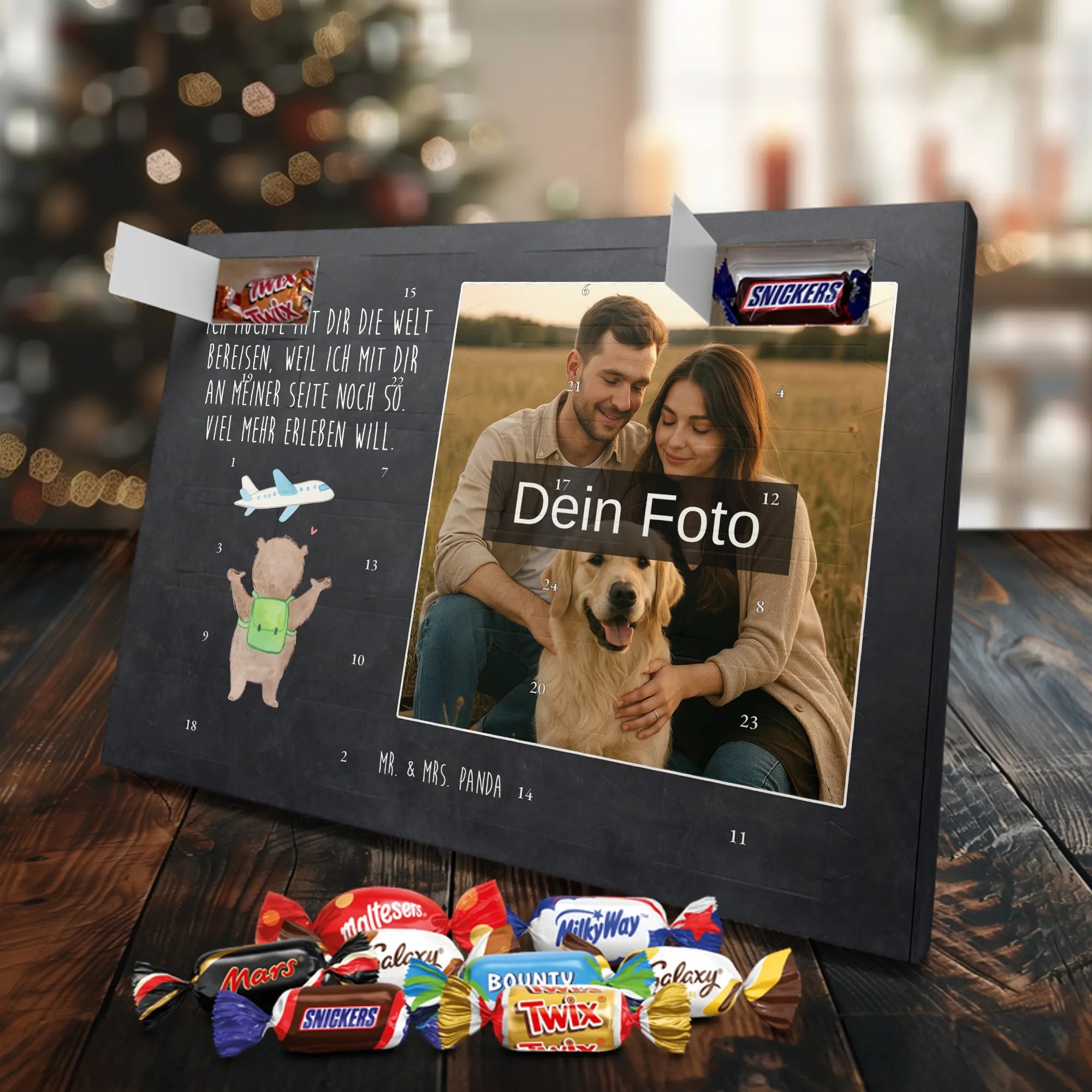 🐼 PERSONALISIERTER KALENDER: Dein Foto-Adventskalender mit 24 Schokoladentäfelchen und Mr. & Mrs. Panda Motiven.