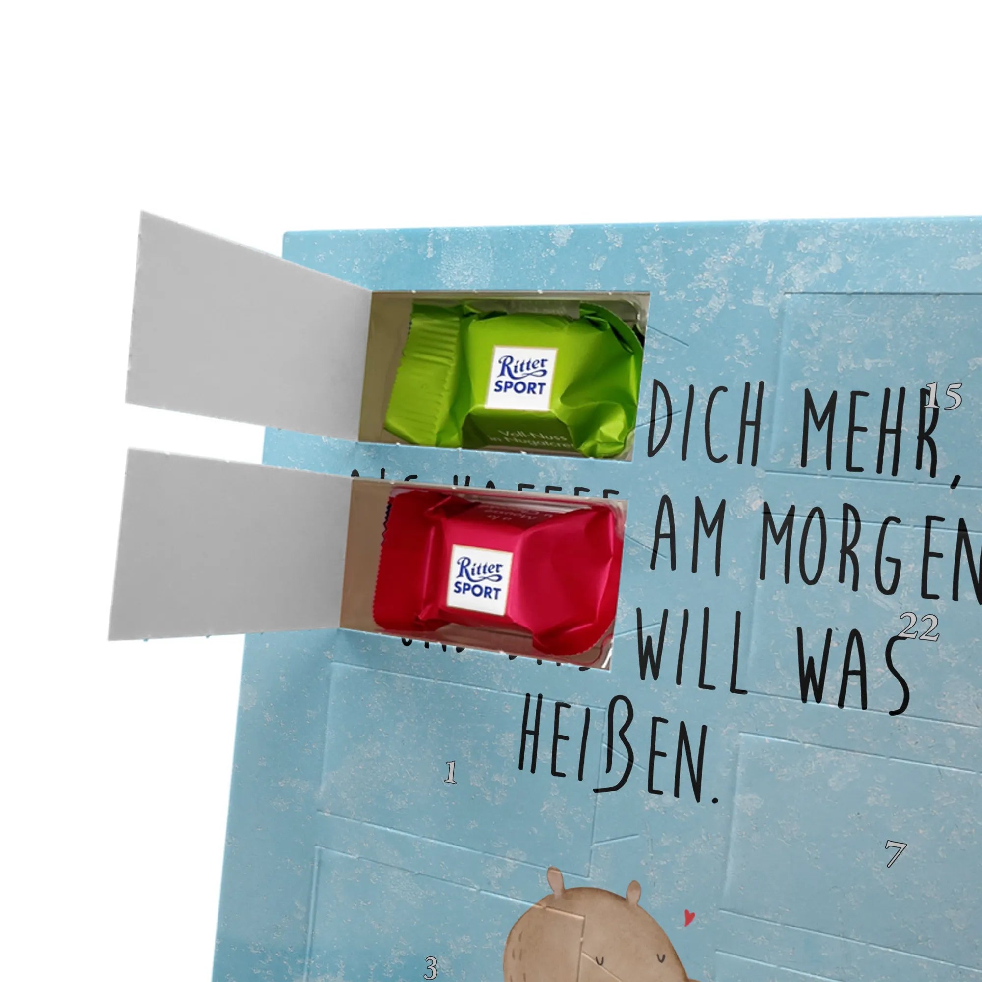 Personalisierter Schoko-Adventskalender mit Foto – das kleine Weihnachtswunder von Mr. & Mrs. Panda! Verschenke jeden Tag Vorfreude: Der Kalender ist liebevoll gestaltet mit unseren herzlichen Illustrationen und Sprüchen, während dein Foto die persönliche Mitte bildet. Bitte lade ein hochauflösendes Foto hoch und prüfe den Bildausschnitt, damit nichts Wichtiges verloren geht. Nutze nur Bilder, für die du die Rechte hast. Die hochwertige, seidenmatte Veredelung und die bedruckten Seitenflächen garantieren ein edles Erscheinungsbild. Maße: 355 mm x 245 mm x 11 mm; lässt sich sowohl aufhängen als auch aufstellen. Achtung: Fotos werden nicht nachbearbeitet oder zugeschnitten; personalisierte Artikel sind vom Rückgaberecht ausgeschlossen. Gefüllt mit 24 einzeln verpackten Schokoladentäfelchen aus den vier Geschmacksrichtungen Vollmilch, Nougat, Zartbitter und Haselnuss – von Sarotti® und Confiserie Heidel®. Insgesamt enthält der Kalender 107 g Markenschokolade. Ein persönliches Geschenk mit süßem Inhalt, ideal für Partner, Familie und Freunde, verpackt mit der typischen Mr. & Mrs. Panda Liebe zum Detail.