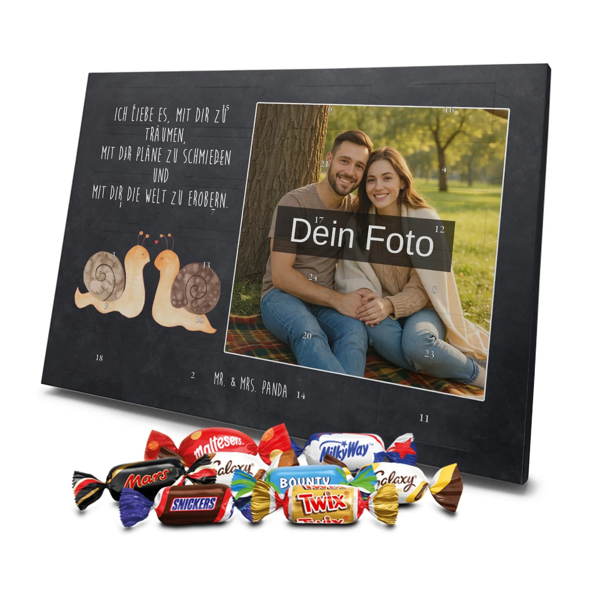 Personalisierter Schoko-Adventskalender mit Foto – das kleine Weihnachtswunder von Mr. & Mrs. Panda! Verschenke jeden Tag Vorfreude: Der Kalender ist liebevoll gestaltet mit unseren herzlichen Illustrationen und Sprüchen, während dein Foto die persönliche Mitte bildet. Bitte lade ein hochauflösendes Foto hoch und prüfe den Bildausschnitt, damit nichts Wichtiges verloren geht. Nutze nur Bilder, für die du die Rechte hast. Die hochwertige, seidenmatte Veredelung und die bedruckten Seitenflächen garantieren ein edles Erscheinungsbild. Maße: 355 mm x 245 mm x 11 mm; lässt sich sowohl aufhängen als auch aufstellen. Achtung: Fotos werden nicht nachbearbeitet oder zugeschnitten; personalisierte Artikel sind vom Rückgaberecht ausgeschlossen. Gefüllt mit 24 einzeln verpackten Schokoladentäfelchen aus den vier Geschmacksrichtungen Vollmilch, Nougat, Zartbitter und Haselnuss – von Sarotti® und Confiserie Heidel®. Insgesamt enthält der Kalender 107 g Markenschokolade. Ein persönliches Geschenk mit süßem Inhalt, ideal für Partner, Familie und Freunde, verpackt mit der typischen Mr. & Mrs. Panda Liebe zum Detail.