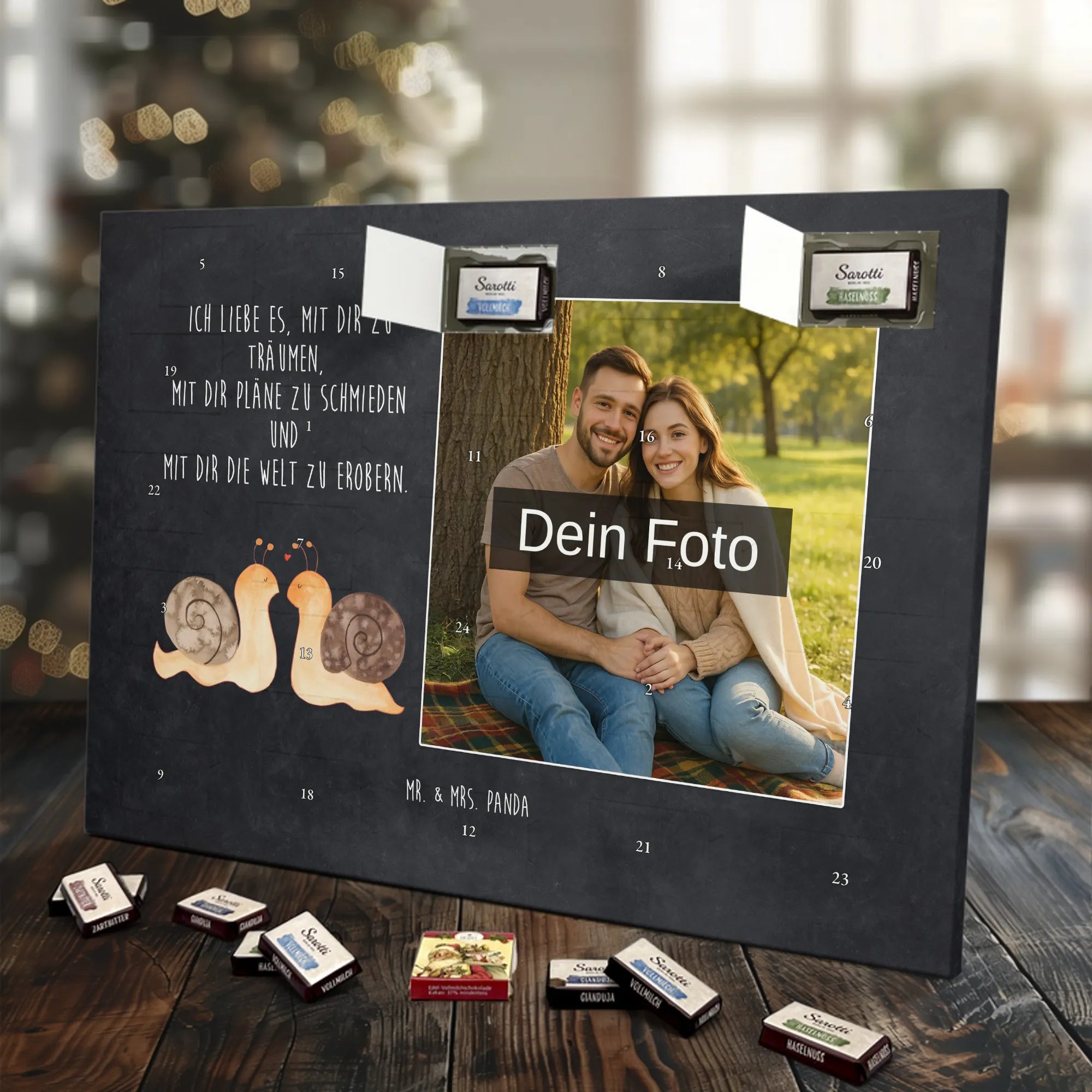 Personalisierter Schoko Foto Adventskalender Schnecken Liebe - Classic - Eisblau