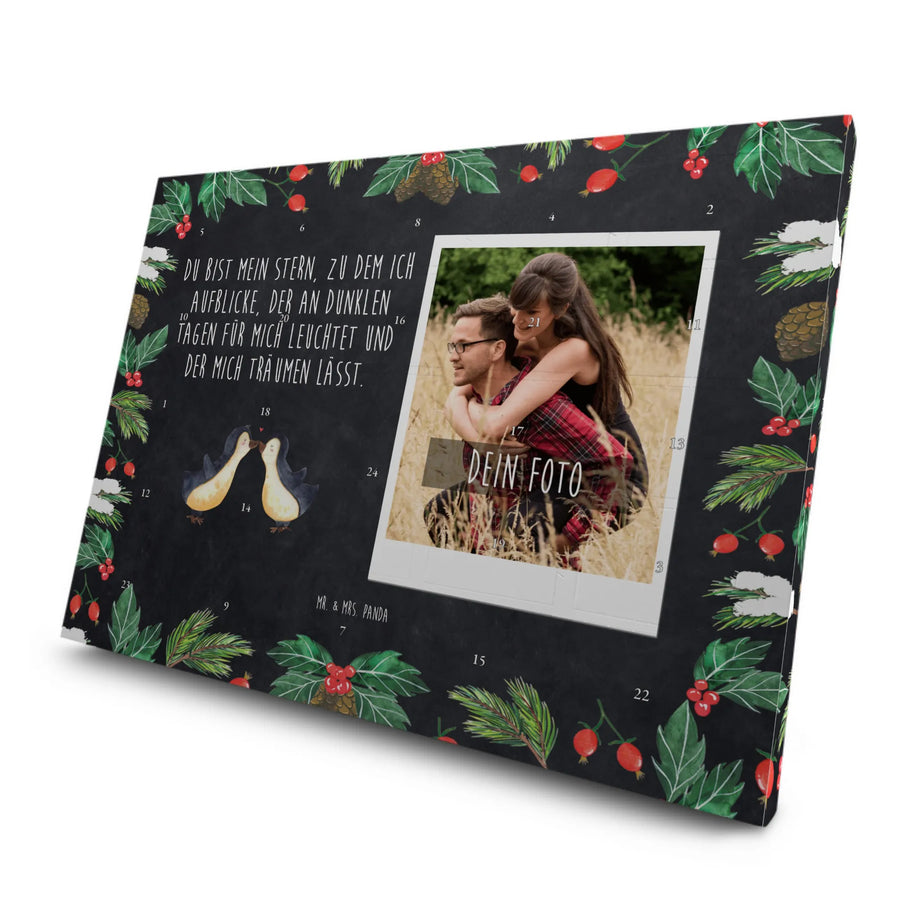 Der personalisierte Tee Foto Adventskalender mit dem Motiv "Pinguin Liebe" von Mr. & Mrs. Panda ist das perfekte Geschenk für Verliebte! Dieser einzigartige Adventskalender bringt nicht nur die Vorfreude auf die festliche Zeit, sondern zeigt auch auf bezaubernde Weise, wie viel dir dein Partner bedeutet.