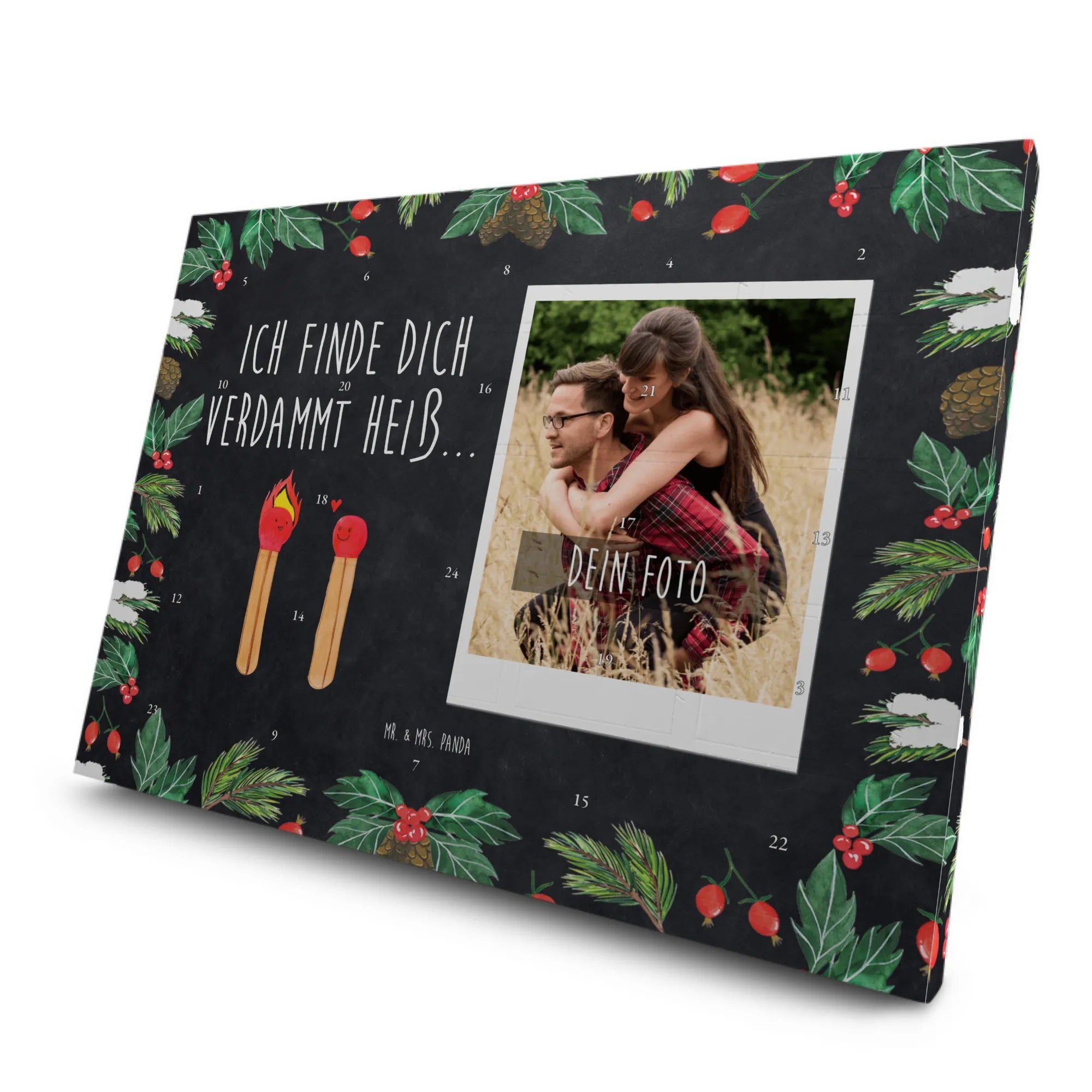 Der personalisierte Tee Foto Adventskalender mit dem Motiv Streichhölzer von Mr. & Mrs. Panda ist das perfekte Geschenk für alle Verliebten und Tee-Liebhaber. Dieser besondere Kalender zählt die Tage bis Weihnachten mit 24 individuellen Teesorten, die in hübschen Pyramidenbeuteln verpackt sind. Jeder Tee ist von höchster Qualität und sorgt für eine gemütliche Stimmung in der kalten Jahreszeit.